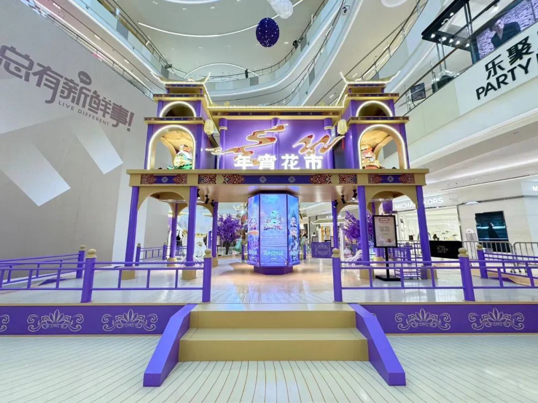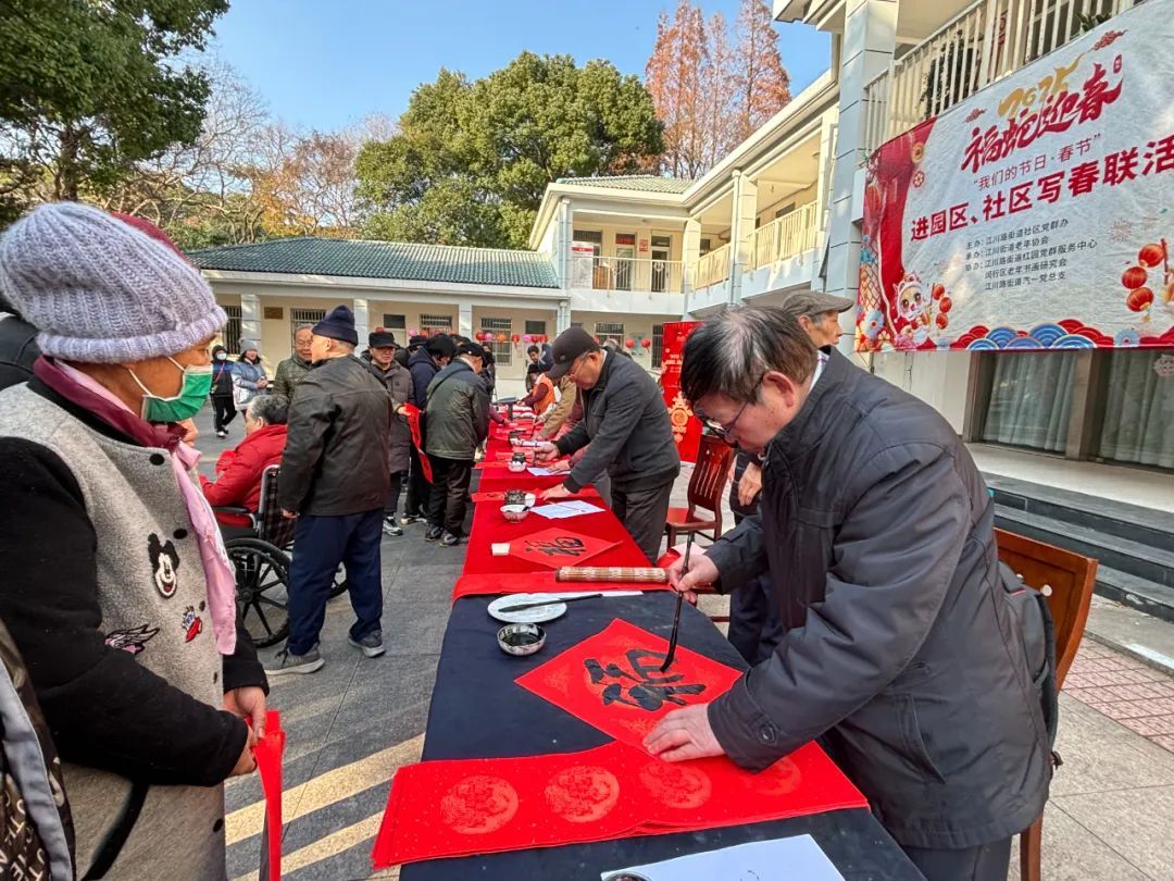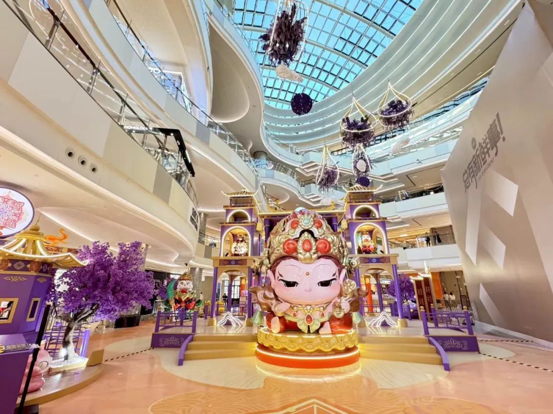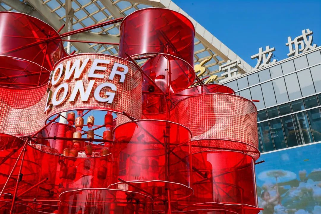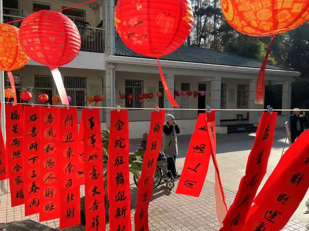 龙茗路上的十尚坊、古美生活广场等居民家门口的商圈也挂上了红灯笼,带来了满满的年味,共同迎接2025年的到来。七宝宝龙城的节日装置“新满意竹”以“中国红”为核心元素,巧妙融合竹编这项非遗民俗形式,将传统与新意交叠环绕,营造出浓郁的节日氛围。2025年“年宵花市”活动与国潮IP福福贴贴联动合作,打造紫金色系的节日场景,设置高互动性点位及饱满的空间感造景,吸引更多年轻客群和七宝老街的游客。中环吴中路口和宋园路吴中路口的树上挂上了红色和黄色的灯笼,迎接着来到虹桥的人们,也照亮了人们心中的喜悦。合川路金虹桥公园内,灯笼高挂,漫步其中,充满温馨与节日氛围。虹梅路老外街西门,一串串彩灯如彩带般悬挂,与中国结相互映衬,为这条充满国际风情的街道增添了几分传统韵味。江川路街道的“红园侨之家”旁的广场上人来人往,人们或是张望,或是执笔而立,一张张寄托了祝福的春联在笔下形成,刚写好墨迹未干的春联被晾在一旁,与高高挂起的红灯笼相映生辉,处处洋溢着欢乐与希望的气息。联航路路口处通过更换了颜色鲜艳的冬季草花,营造出繁花似锦的节日氛围,并在两侧增加了中国结、红灯笼、剪纸等中国传统元素,喜气洋洋。浦江万达新年新气象,跨年迎艺术嘉年华,萌娃汇演嗨翻天,8米巨型獬豸气球展,喜气洋溢了整个新年。踏入南方商圈,新春的气息扑面而来。南方连廊上高挂的串串红灯笼摇曳生姿,喜气洋洋。百联南方购物中心里,“花YOUNG南方”装置布置及迎新活动吸引着众人目光,卡通花朵笑容满面,新年喜悦跃然眼前。