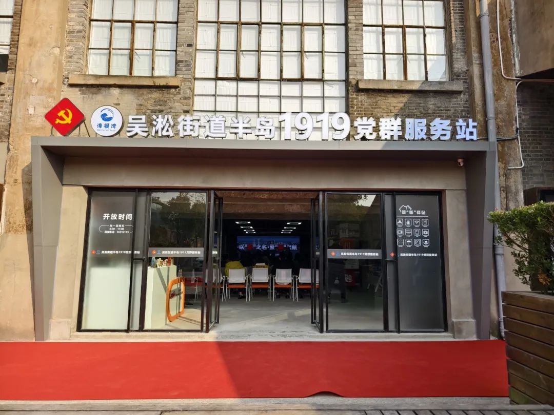 “海凝湾”半岛1919党群服务站阵地暨吴淞街道第一街区党支部工作站,位于淞兴西路258号10号楼一楼,面积400平方米。在这个拥有百年红色底蕴的国家级工业旧址上,通过空间利用、资源整合、跨界合作、功能挖潜等方式,为新兴领域群体建立吴“家”贴“新”加油站,建设生动而有活力的大网格“党建一家亲”“睦邻”生态圈,打造一个凝聚有力、治理有效、服务有心、富有特色的高效能党群服务阵地。