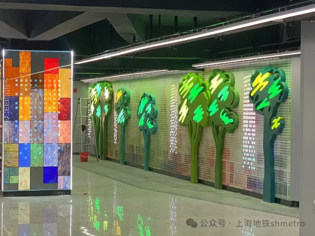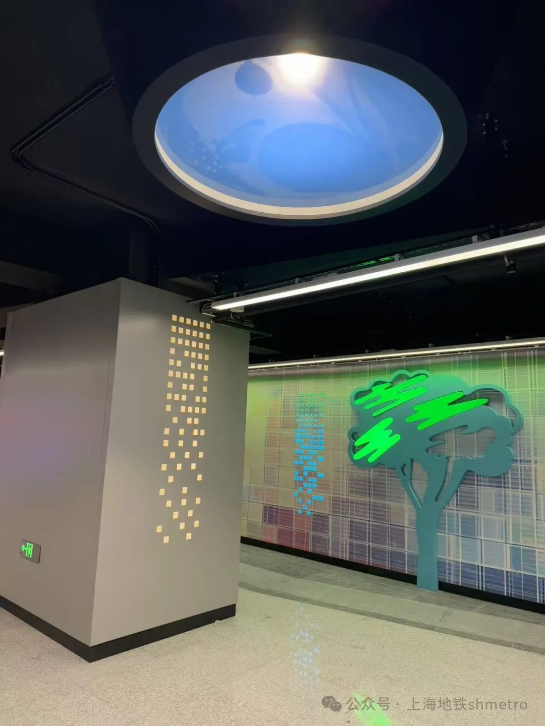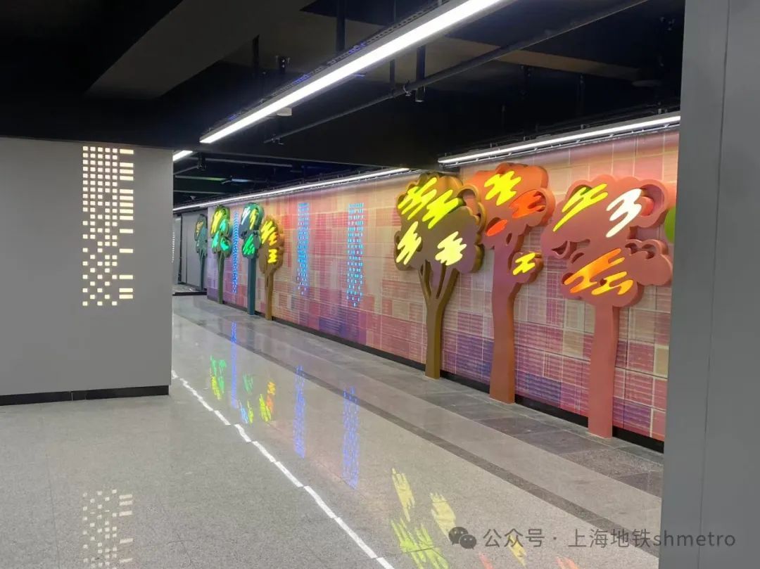 同时,为提升市民换乘舒适性,彰显城市特色品味,积极推动艺术与工程建设结合,车站设计以上海城市建设为灵感,打造了“遇见天山,脉动都市”的主题沉浸式公共艺术和文化空间。在设计中,充分融合了天山路、娄山关路的商业、休闲、生活等元素,以及结合地域人文环境和周边建筑美学特征,运用当代艺术表现和灯光技术,营造了摩登现代、轻松活力的都市气质。