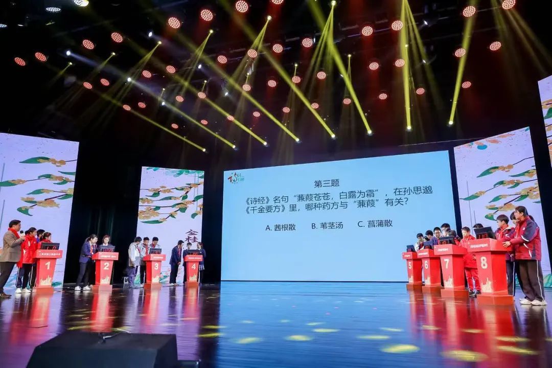 作为浦东新区建设新时代文明实践中心、传承弘扬中华优秀语言文化的重要品牌活动,浦东科普诗词大会已经成功举办八届。主办方邀请专家学者设计打造了超过3000道题的丰富题库,深入挖掘诗歌与科学的独特魅力。今年,题库更是融入了中医药文化这一主题,旨在通过古诗词带领学生感受中医药文化丰富的文化内涵和医学智慧,以及古人对生命健康的深刻理解和对自然和谐的崇高追求。