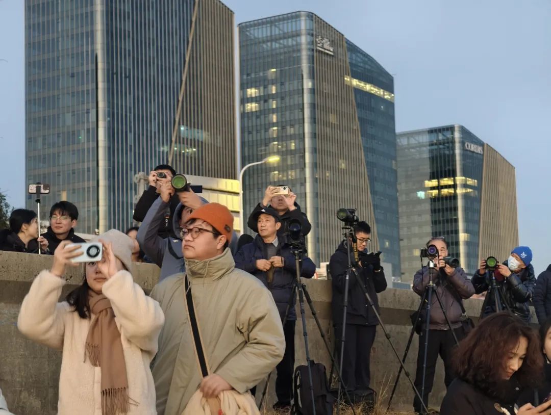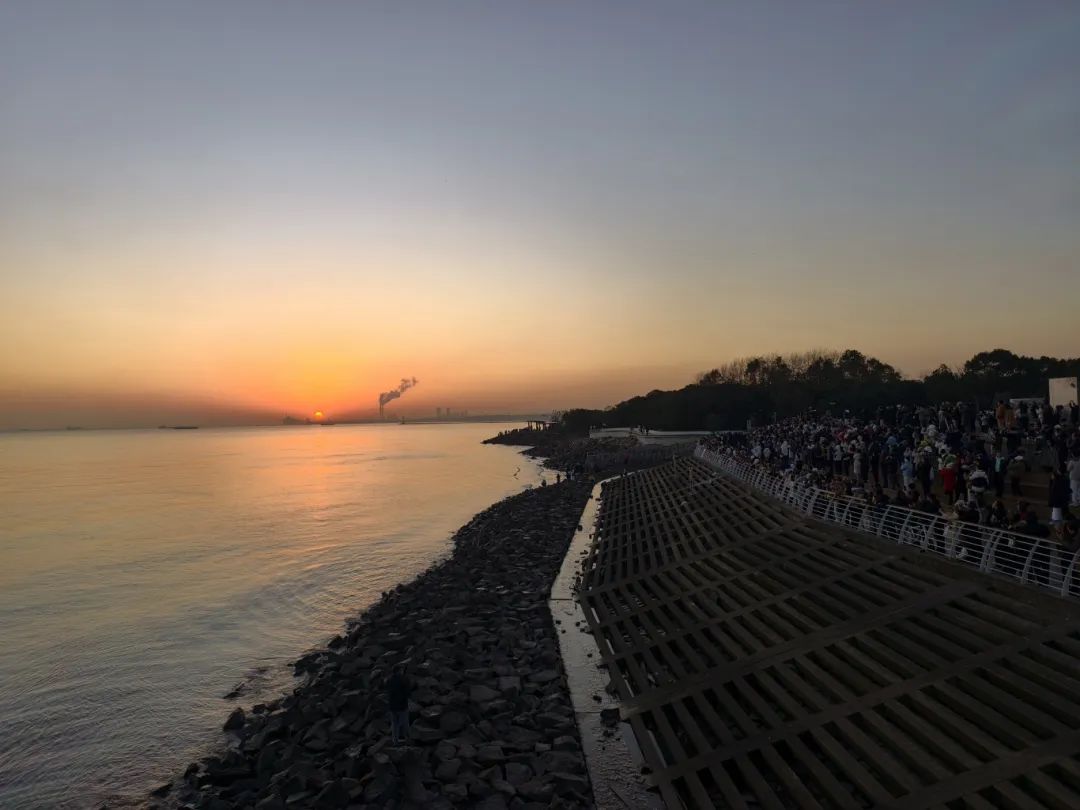 活动分为“观日出”和“迎新跑”两部分。来自四面八方的市民游客和马拉松爱好者齐聚宝山滨江,迎接璀璨的日出。大家纷纷拿出手机、相机,兴奋地讨论着最佳拍摄角度,时不时望向天边,只为捕捉新年第一缕阳光的绝美瞬间。