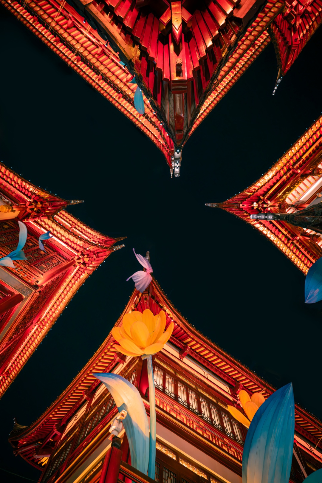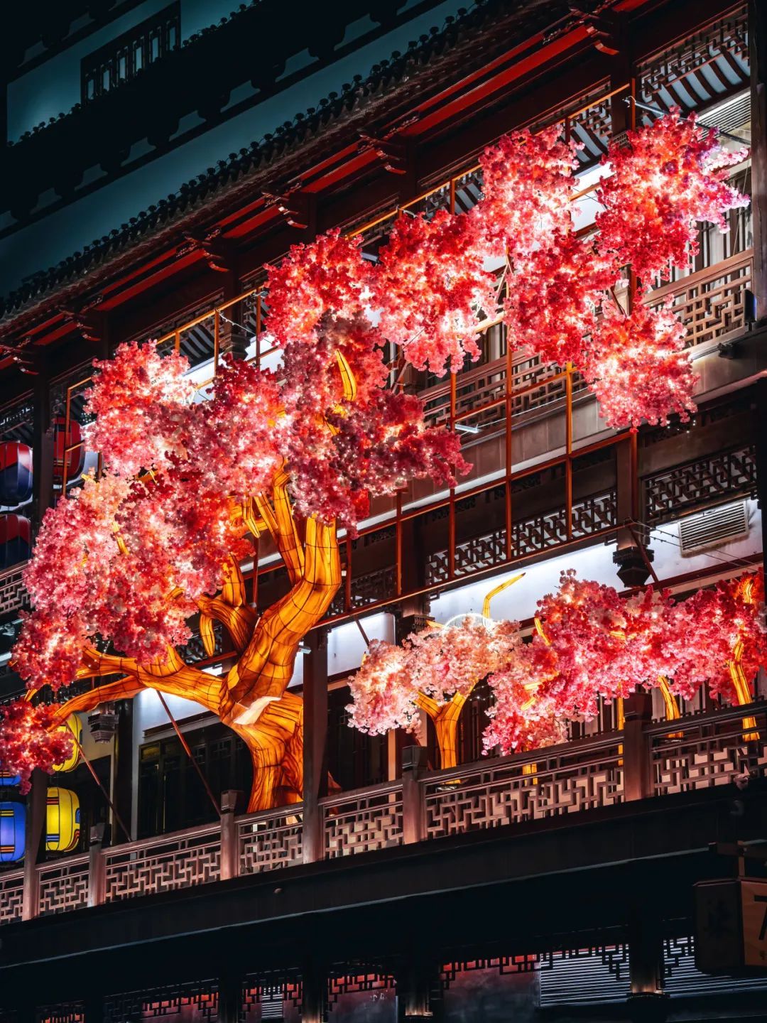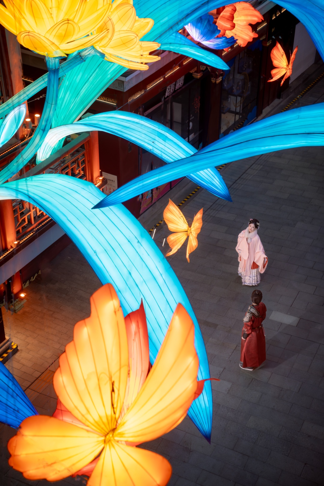 豫园老街展现豫园灯会30年的灯彩历程,从中国十大灯彩流派中,选其经典造型精细还原,营造出“花市灯如昼”的沉浸感。让大家感受传统灯彩在现代化创新中的转变,通过各个流派的灯笼展示,聚焦非遗文化,传达中国灯彩艺术的和合之美。
