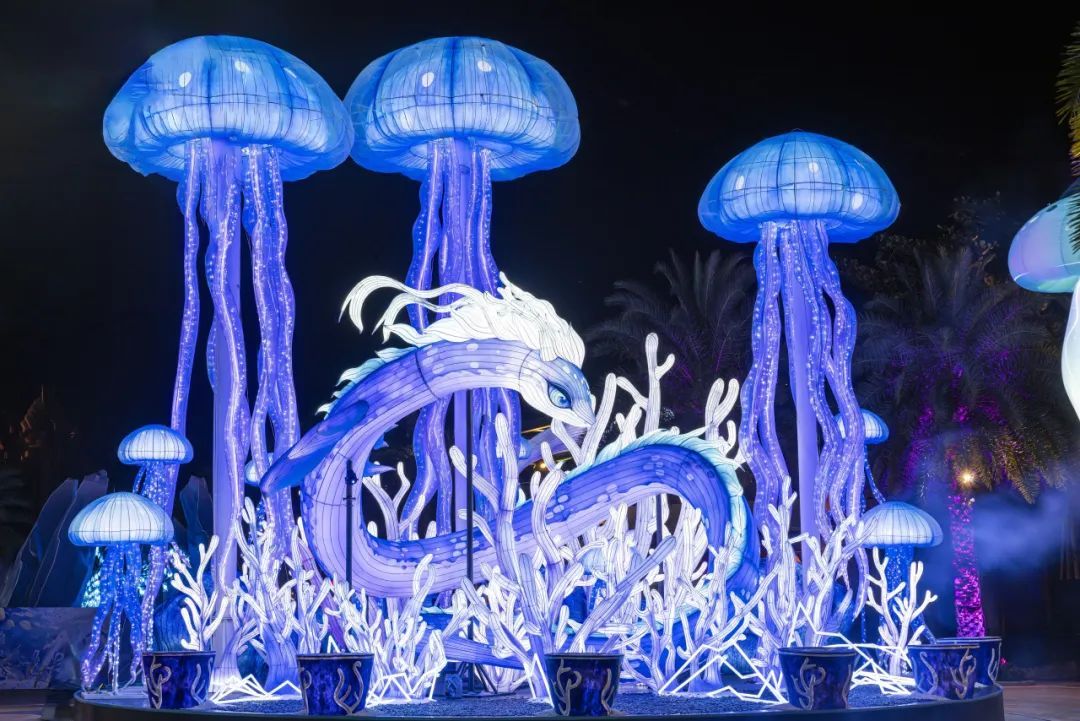 豫园伸展手臂,与更多文化品牌跨界联合。通过不同形式创新灯组演绎,众多品牌融合,邀大家共同沉浸山海奇豫之丛林秘境中,感受春之盎然、生机勃勃的景象,同贺蛇年新春,品牌与灯彩艺术完美融合,助力文化的多元呈现。