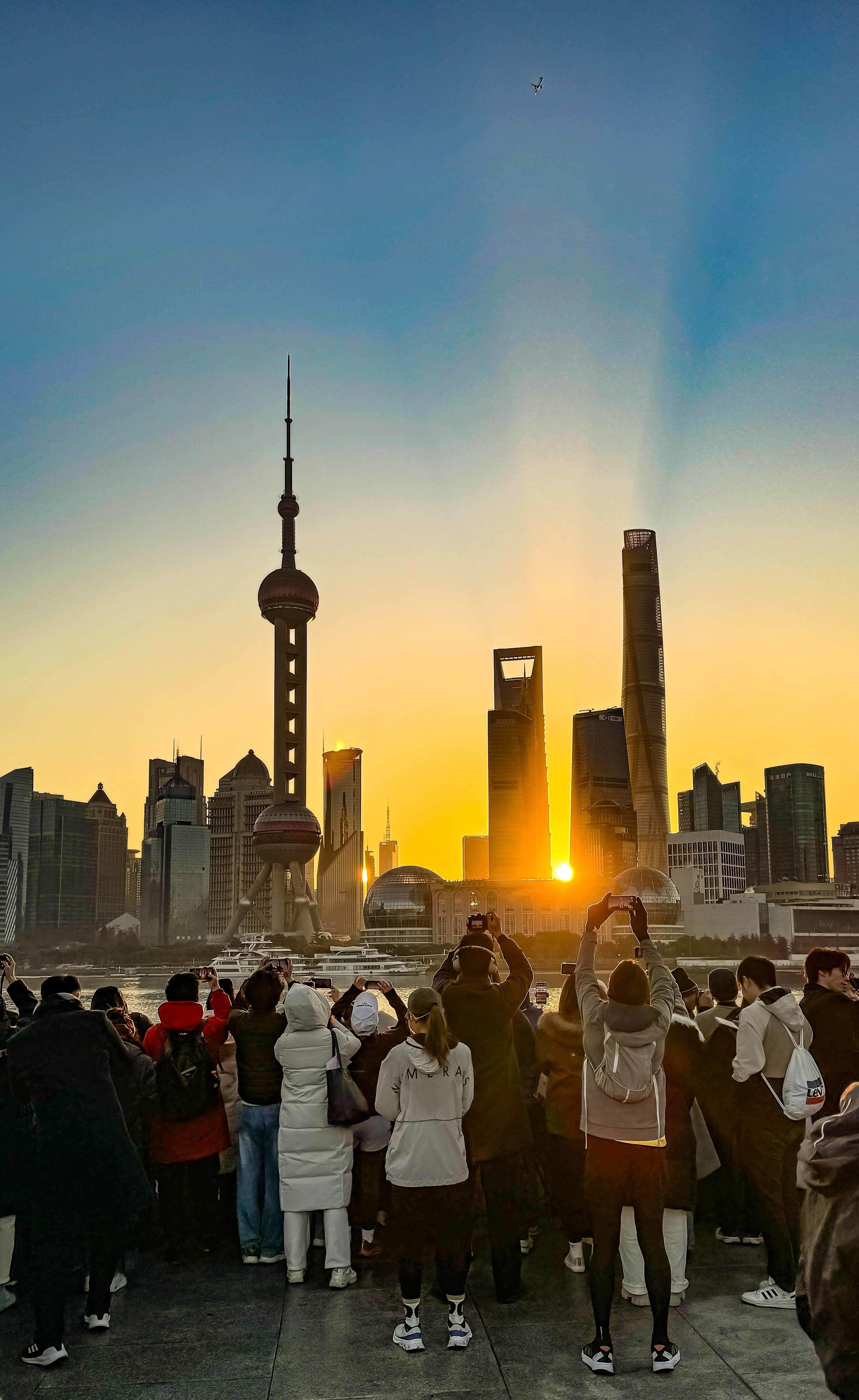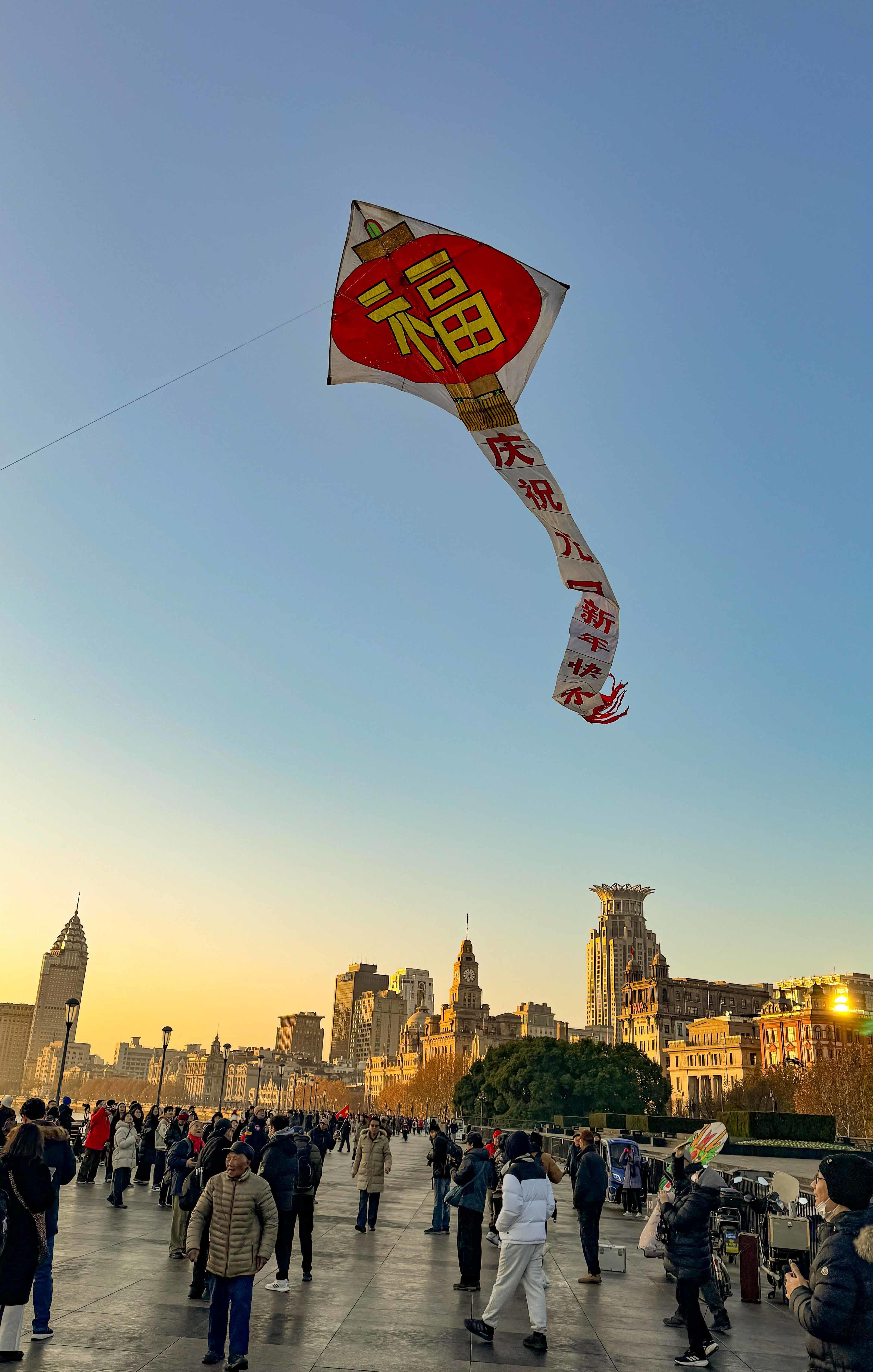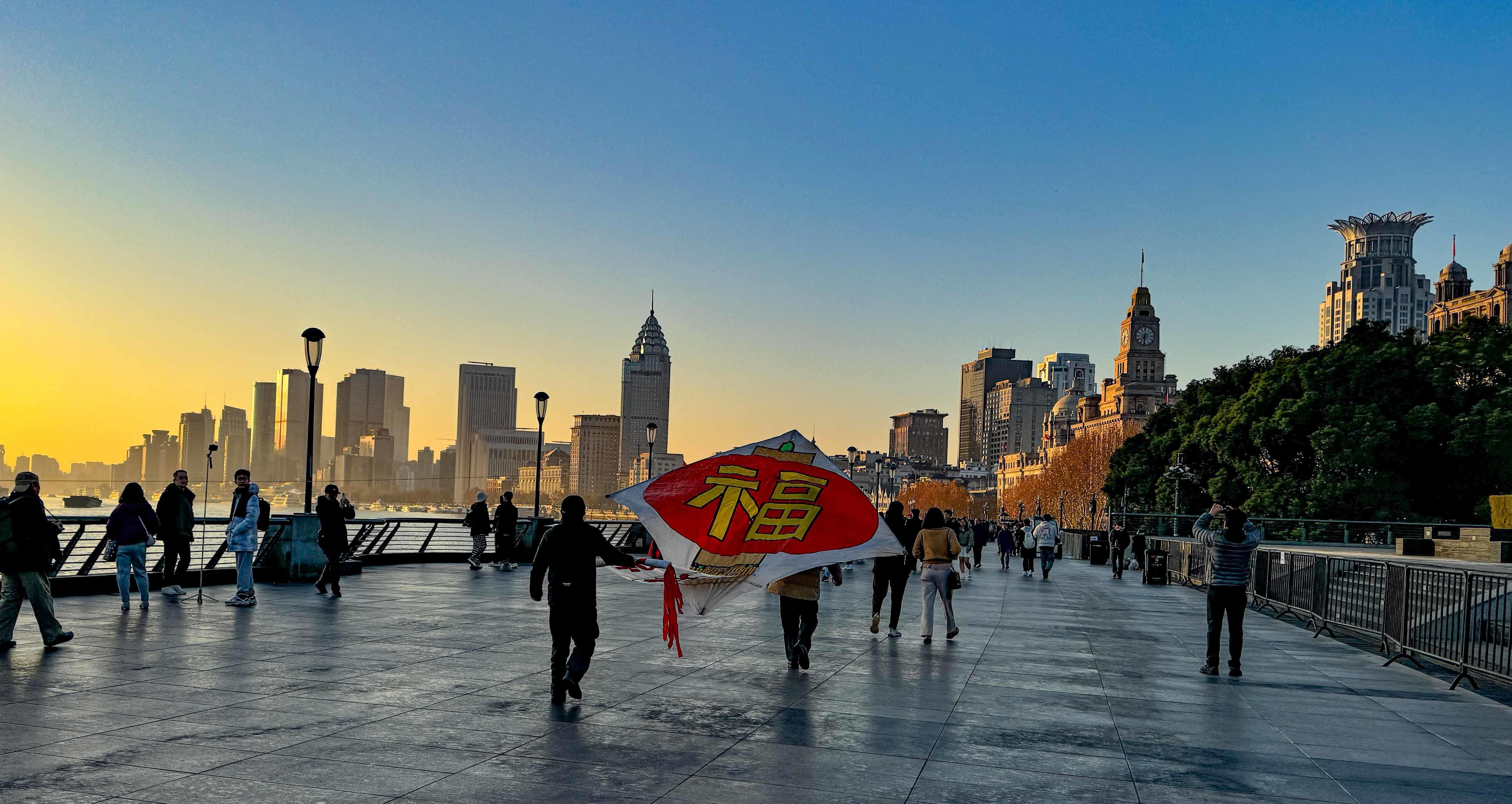 2025年1月1日,上海外滩,随着元旦的第一道曙光破晓,众多上海市民和来自世界各地的游客在清晨的微光中聚集,他们心中充满了对新年的期待和喜悦。