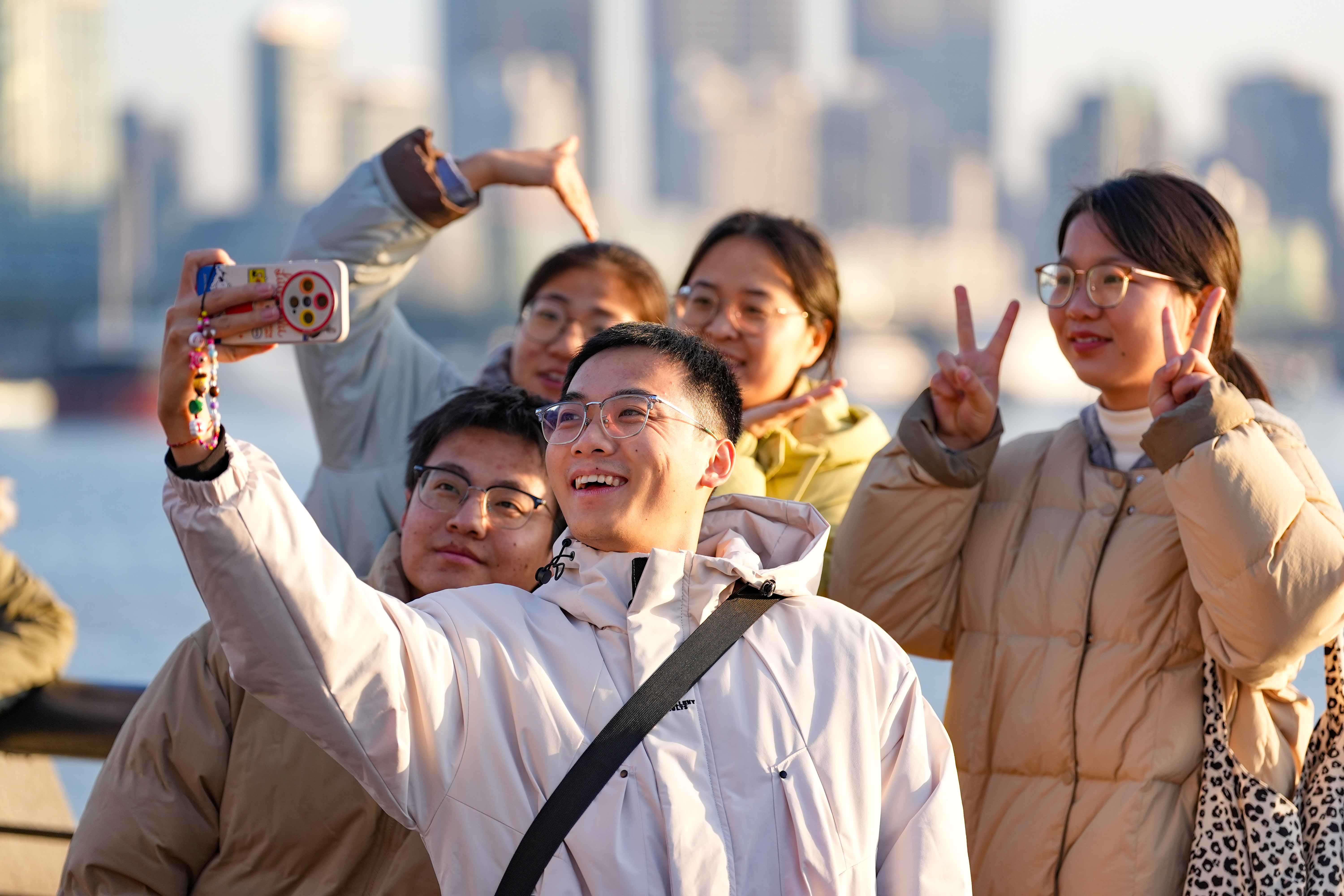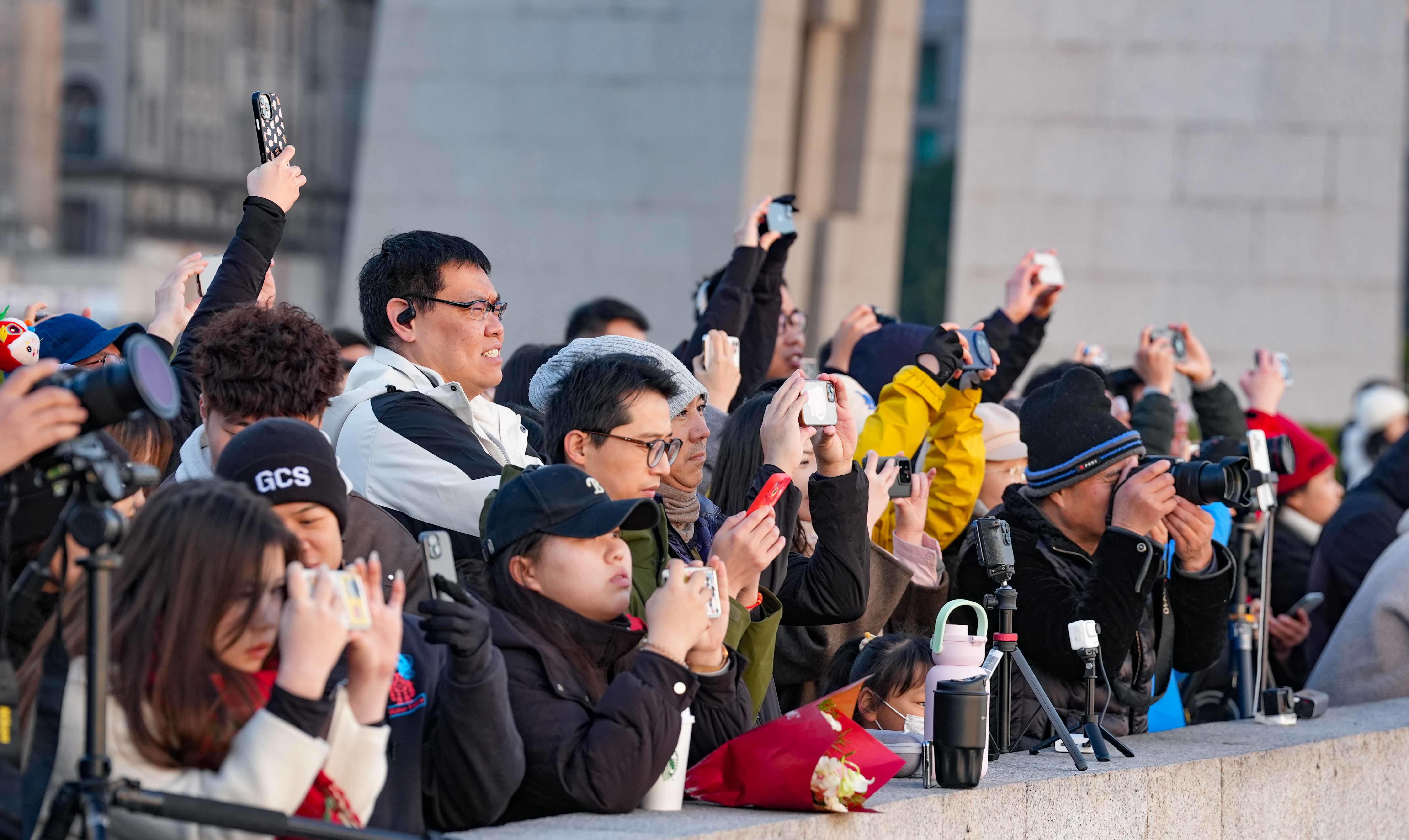 他们手持相机,捕捉着新年的第一缕阳光;放飞着巨大的“幸福”的风筝;挥动着鲜艳的五星红旗;跳着充满活力的舞蹈;拥抱2025的第一缕幸福时光。