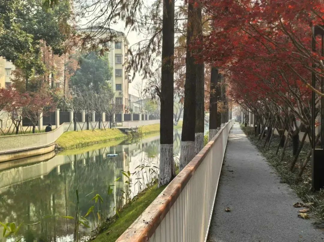近年来,随着淀南片小流域改造工程的实施,徐汇区华泾镇的河畔新增了一个又一个沿河步道、河畔绿地和亲水空间。今年11月,东新港沿岸发生了巨大的变化,从原本杂乱幽暗的背街暗渠,成为居民闲暇时游憩散步的好去处。
