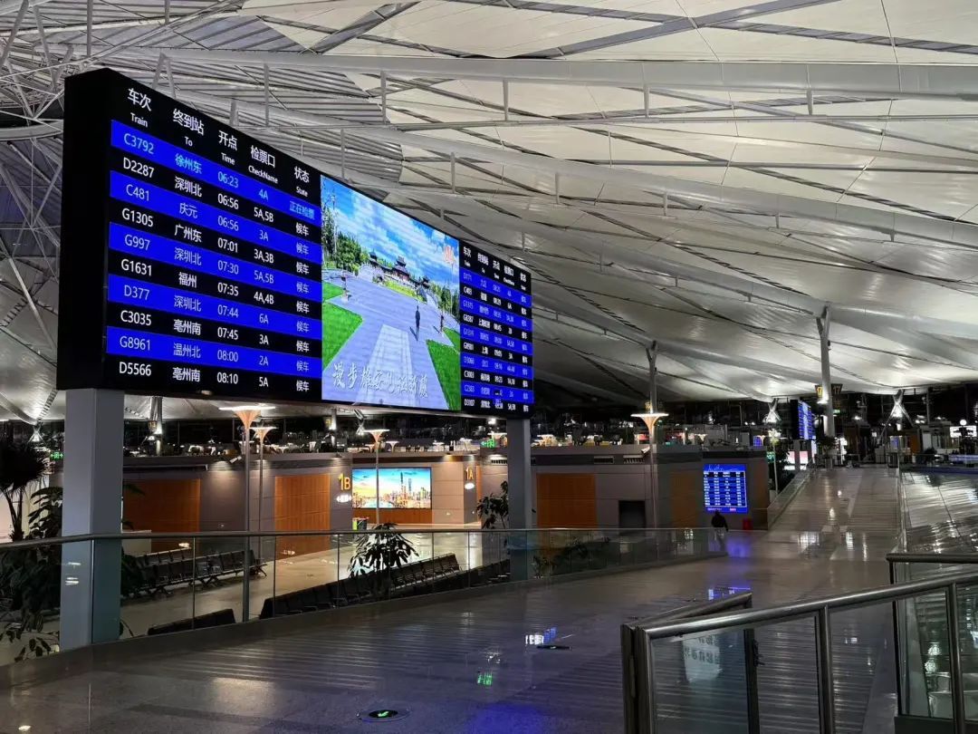 上海南站位于上海市徐汇区西南部,与地铁1号线、3号线、15号线和长途客运南站紧密衔接,是上海对外联系的陆上“南大门”。本次升级改造项目首创“装配滑轨式可移动遮雨棚”结构体系,高效完成了超6万平方米屋面阳光板更换和4.3万平方米穿孔铝板翻新,攻克了全国最大面积的站房屋面阳光板更新改造难题。同时,布局调整后的候车室则更具空间感,可容纳旅客数量扩充至9000人,还增加了自助服务区、自助充电吧台、智能温控直饮水等便民服务设施。此外,为了减少旅客安检进站等候时间,增加至20台安检仪、40个实名制验证闸机。安检通道旁新设有4台轿厢式复位单向门,可以方便携带大件行李的旅客出站。“里面挺大的。”“非常清楚,走一段路就有一个指示牌。”不少旅客首次来到南站乘车,对提档升级后便捷宽敞的上海南站好感倍增。