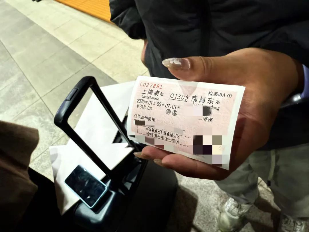 在得知自己即将乘坐的G1305次列车是南站首趟高铁列车后,有的旅客难掩兴奋之情,纷纷举起手机合影留念;有的旅客还特意取了纸质车票,留作纪念。