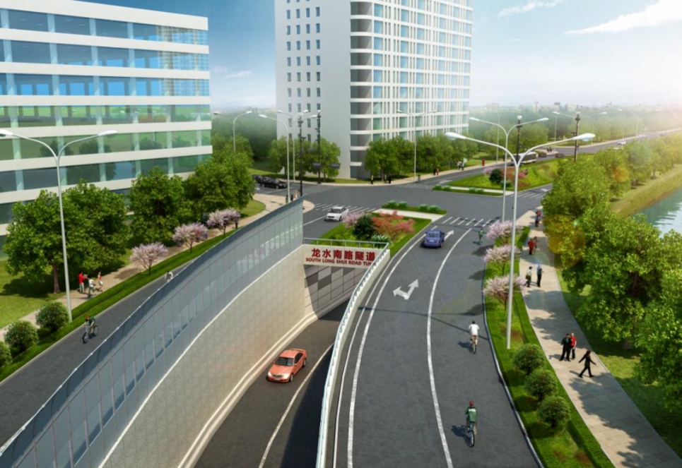 龙水南路越江隧道工程西起龙水南路喜泰北路交叉口,盾构过江后,浦东出入口分南、北两线,北线至海阳西路耀龙路交叉口;南线至高青西路耀龙路交叉口,于2019年12月25日开工建设。