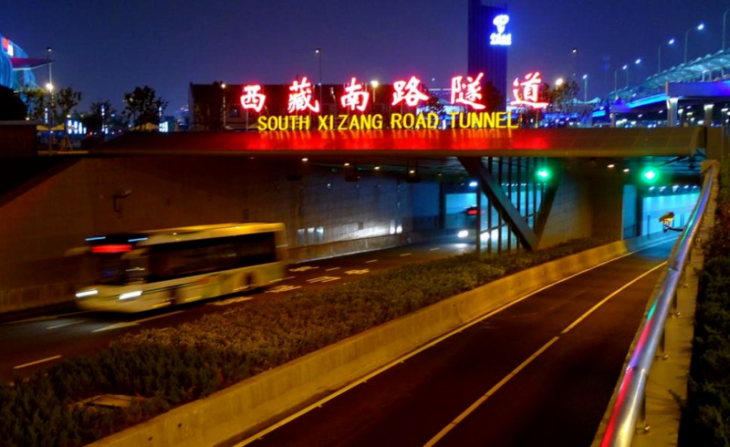 西藏南路隧道首次引进了太阳能节能技术——在隧道进出口处的“光过渡段”顶层设置太阳能采热板,可以用来发电,为隧道内部的部分路段提供照明。