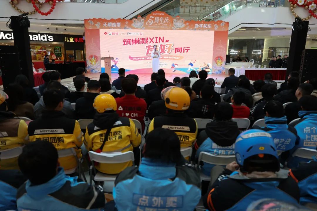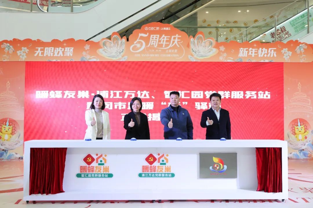 近日,闵行区浦江镇在浦江万达广场举办了“筑巢凝XIN 友好同行”暨2024年新就业群体“暖蜂友好行动”主题活动。活动现场,浦江镇发布了友好商圈“三万”项目,并为暖蜂友巢党群服务站和暖“新”驿站揭牌。
