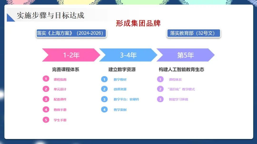 控江中学教育集团计划用五年时间,分三步走,构建完善的人工智能课程体系和配套资源,打造人工智能教育生态。
