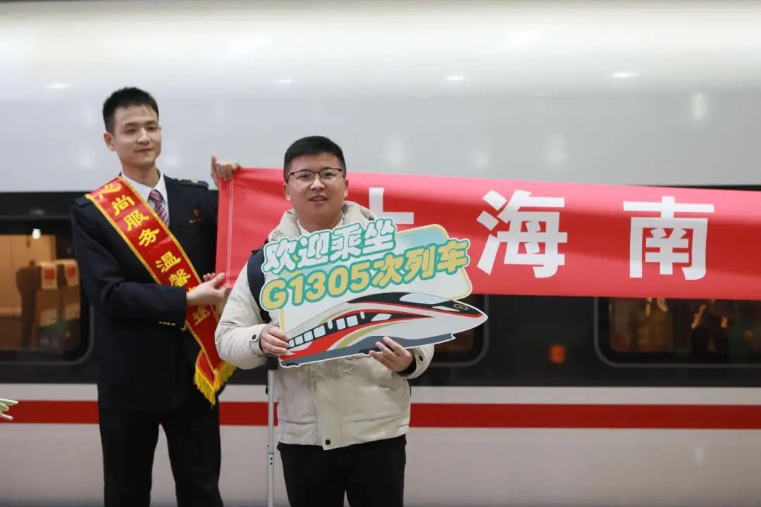 同日实施新运行图,上海南站首趟高铁列车G1305次7时01分开出,沿途经杭州西站、黄山北站、南昌东站、赣州西站、惠州北站、新塘站停靠,全程运行7小时39分钟,将于当日14时40分抵达广州东站。