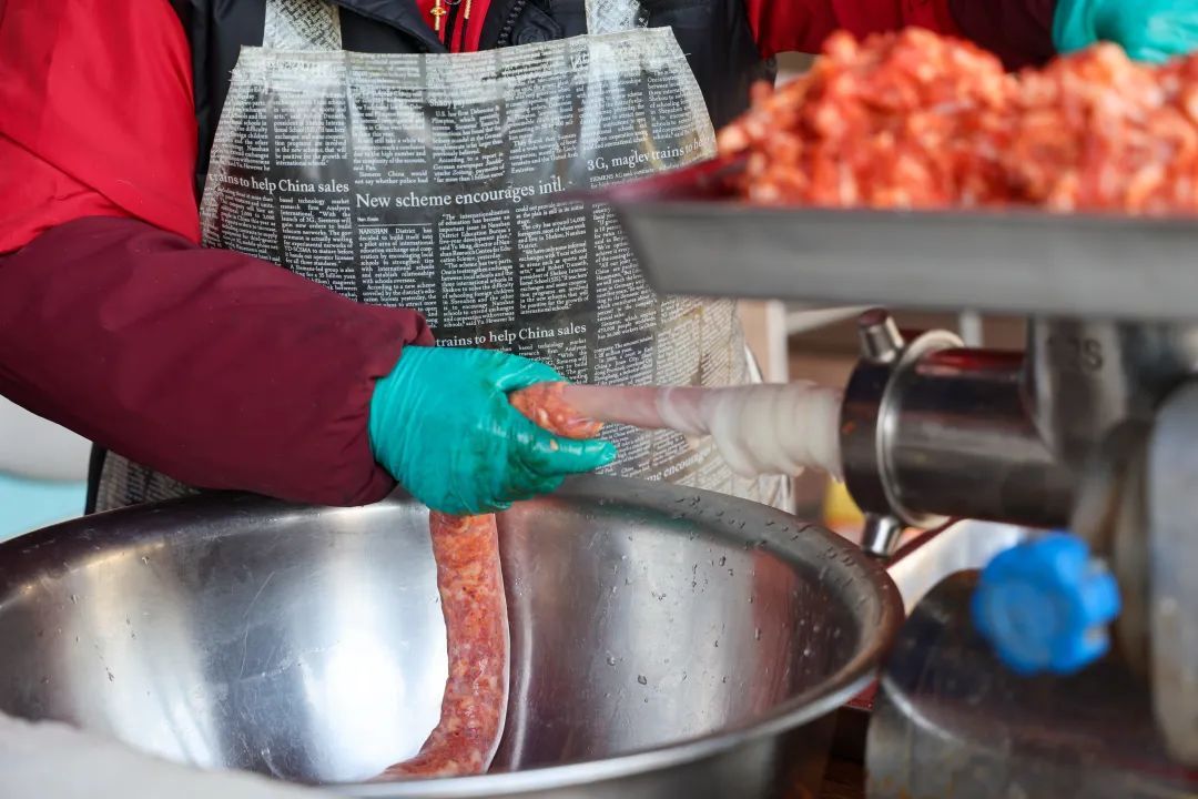 腊月已至,新春将近,家家户户都开始为年夜饭提前做准备。灌香肠、腌咸肉是不少金山人的年味仪式感,寓意新的一年吉祥红火、幸福美满。