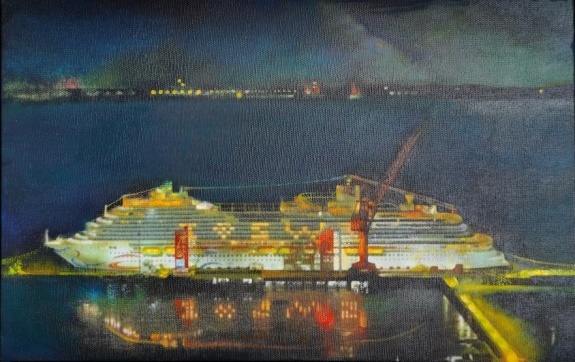 ——中国首艘国产大型邮轮“爱达·魔都号”启航》油画
