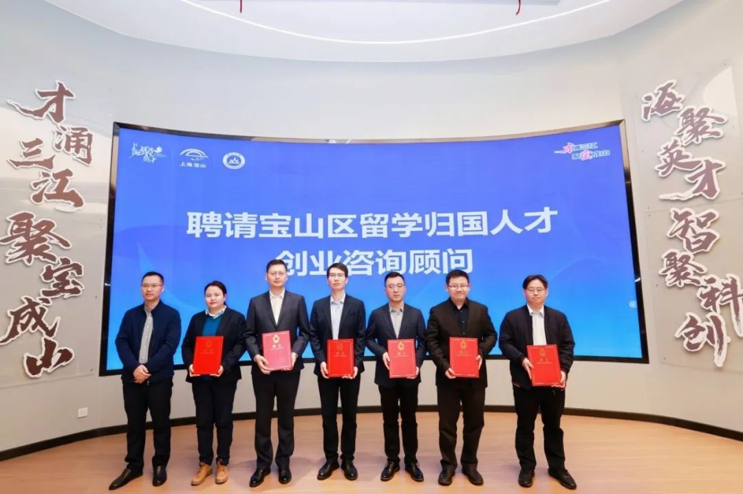 为充分发挥我区创业大咖的示范引领作用,着力推动以才育才、以才促产的良好效应,吸引更多优秀海外学子留在上海,创在宝山。活动现场,市人才工作局规划研究处副处长李凯向上海蔚建科技有限公司、上海蓝鹊生物科技有限公司、上海氢田新材料科技有限公司、上海北大科技园有限公司、上海宝山大学科技园发展有限公司、上海复宝投资发展有限公司相关负责同志,颁发“宝山区留学归国人才创业咨询顾问聘书”。