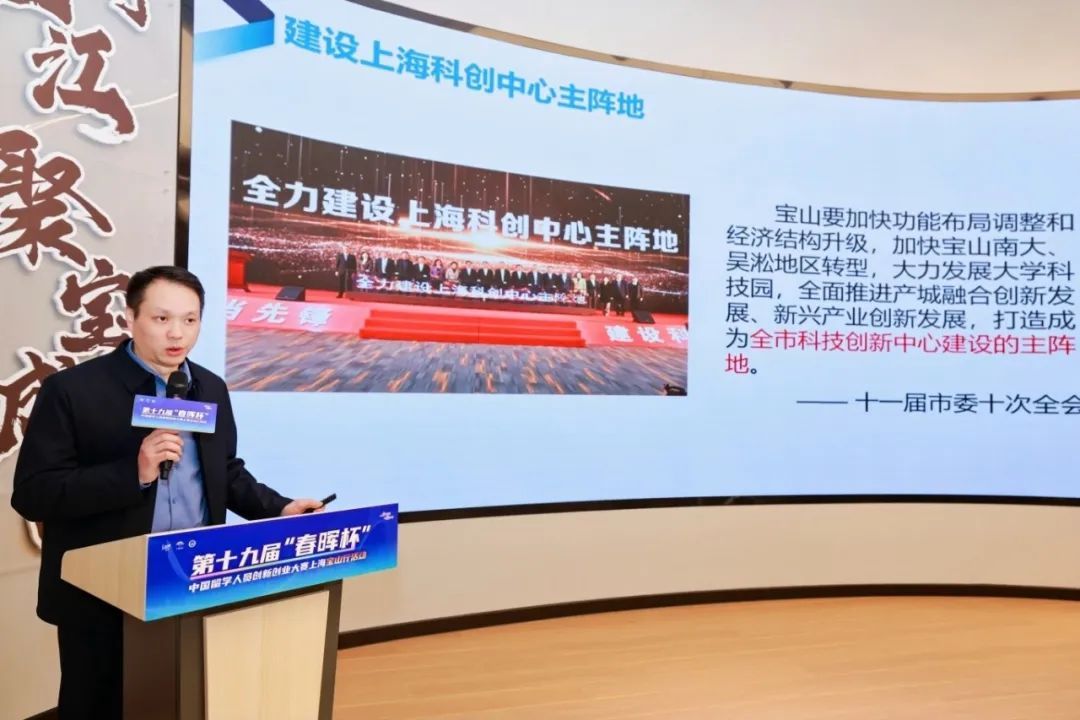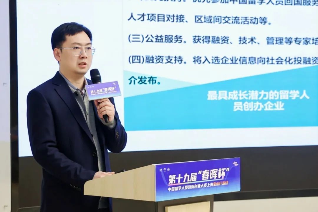 “春晖杯”中国留学人员创新创业大赛,作为国家首个面向海外留学人员的创新创业赛事,自2006年起已连续成功举办19届,是吸纳海外创新创业人才和创新创业项目的重要平台。2024年,宝山区成为第十九届“春晖杯”协办单位,进一步延伸了我区海外揽才触角,提升了上海宝山留学人员创业园2.0版引才能级,并吸引了一批优秀留学生创业项目来宝山寻求发展机遇。