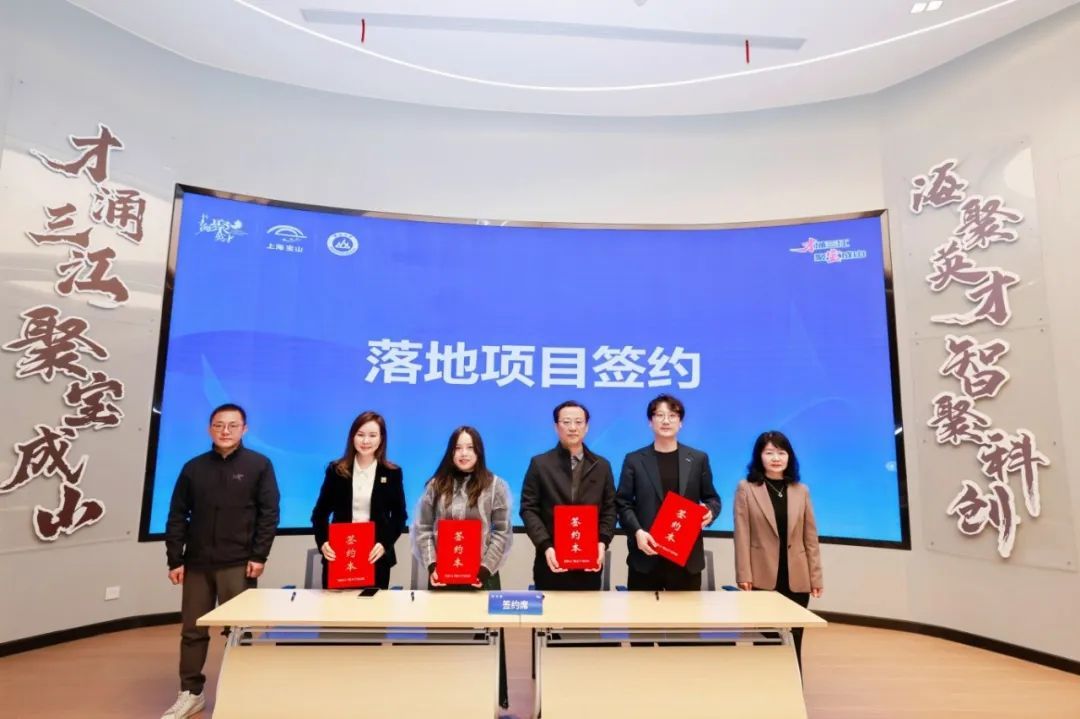 为了更好地实现以赛引才、以赛聚商的目的,活动现场,在市海聚英才发展促进会秘书长徐文亮同志、区委组织部副部长、区人才工作局局长阳晖同志的共同见证下,春晖杯优秀入围项目——岩彩艺术衍生文化创意产业项目、JobABC全球智能招聘平台项目作为首批落地项目,分别与上海复宝投资发展有限公司、上海宝山都市宝谊经济发展有限公司签署合作意向书,这标志着宝山区与春晖杯的合作迈入了收获的季节。