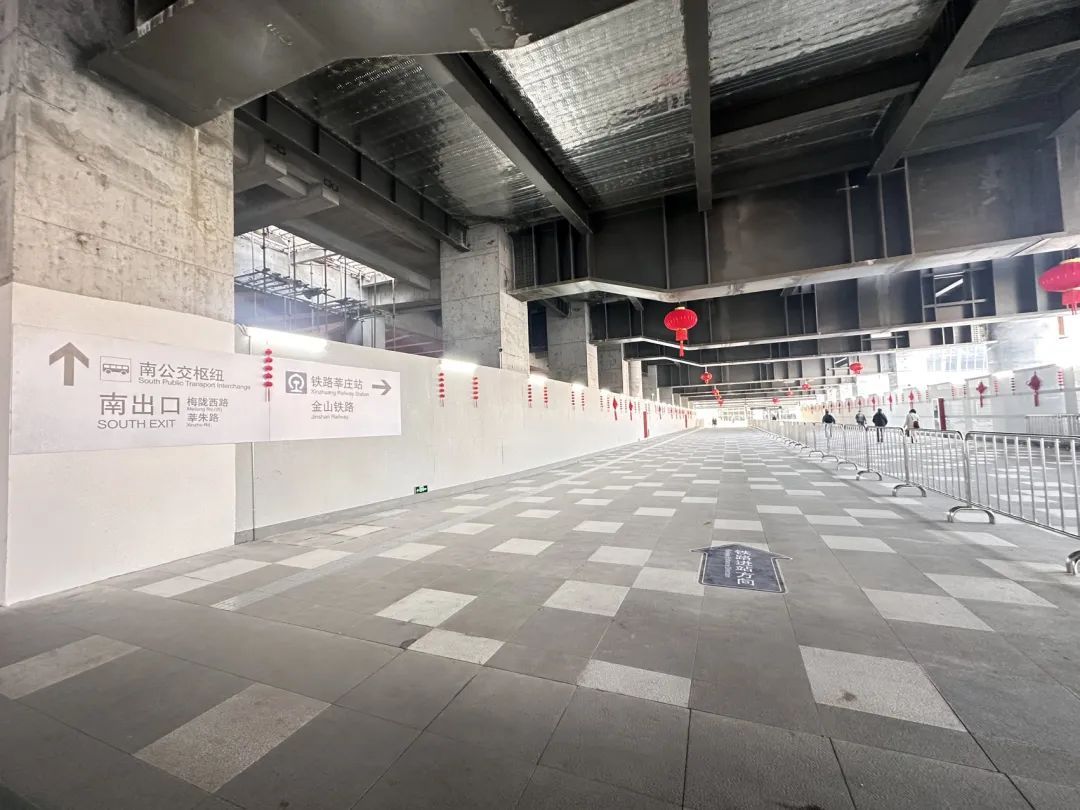 记者了解到,铁路与地铁之间尚未实现免安检直联模式,乘客仍需依规安检换乘。对此,区交通委相关负责人解释,当前莘庄上盖仍处建设中,旅客换乘通道为临时通道,且仍需多次翻交,暂无法设置免安检通道,因此旅客换乘地铁时仍需进行安检。同时,考虑到设置免安检通道可能会导致地铁站台产生瞬时大客流,有踩踏安全隐患。“由于换乘通道是丁字口,尤其在早高峰客流大的时候容易形成对冲,进而造成拥堵混乱的局面,我们迅速反应,及时对通道布局优化调整。”莘庄地铁站上盖综合开发项目建设方莘天置业相关负责人表示,考虑到有人是第一次来莘庄换乘分不清方向,莘天置业会同莘庄镇组织近30名志愿者,分布在枢纽出入口、火车站出入口及换乘通道内,为旅客提供咨询引导工作;同时,莘天置业连夜在换乘通道、天桥以及地铁站站厅等处张贴了换乘标识。“预计今后莘庄地铁站早间客流量大将会是常态,但是大家都很配合,有序排队进站。”区交通委相关负责人表示,闵行将完善通道内客流组织,在换乘通道内设置铁马对进站及出站客流进行分流;在客流到达高峰期间采取临时措施,设立换乘地铁蓄客区,通过铁马设置蛇形通道进行限流。同时,完善指示标志引导客流,加派志愿者及执法人员,维持客流秩序。此外,区交通委也积极协调网约车平台,全力保障莘庄站周边运力,同时组织共享单车企业对周边共享单车进行有序清运管理。点击可查看:铁路莘庄站开通倒计时!地铁、公交如何换乘?(附金山铁路时刻表)