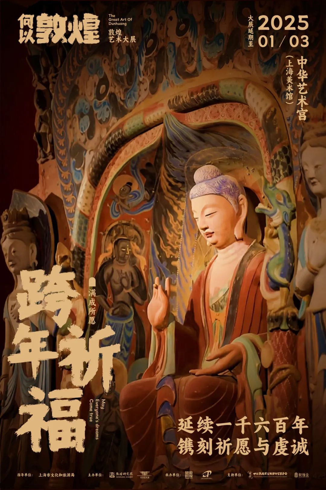 从莫高窟的壁画到彩塑,从古老的佛经到绚烂的艺术,观众徜徉在莫高窟经典洞窟复制窟,在距离敦煌三千公里之外的上海,感受着敦煌独特的文化魅力……这个秋冬,“在上海,看敦煌”成了上海文旅的热词之一。1月3日傍晚,当最后一位观众走出位于中华艺术宫(上海美术馆)0米层的《“何以敦煌”敦煌艺术大展》展厅,这场持续三个多月的艺术盛宴大幕缓缓落下。