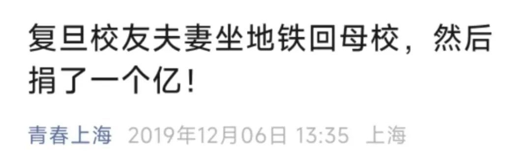 最近两位复旦校友陈晓明和何佩鑫重返母校,受到了师生的热烈欢迎。2019年12月,老夫妻俩乘地铁到复旦大学给母校捐赠1亿元的事情至今还在流传。而5年来,受到他们资助的学子正在茁壮成长。教育,正是在这样朴实无华的助力和接续中不断传承延续。谈及当年乘地铁捐巨款一事,老俩口的回复很质朴坦率,“坐公交车、地铁来,这是很正常的事,做普通人是一个人的本分。”他们表示自己当年都是农村出来读书的,在母校的支持下,他们才有机会读完研究生、留校任教、出国进修,并创出了自己的一番事业。可以说是母校复旦改变了他们俩的人生轨迹。为了报答母校,他们捐赠了巨款,就是要让更多贫困孩子也和他们当年一样,有相同的机会和平台,通过努力学习改变自己的命运。近年校友给母校捐款之风兴起,这些校友大多在母校就读时受到过照顾和支持,学成之后便想到投桃报李,希望尽自己之所能,助力母校发展,让学弟学妹们有一个更好的学习成长的环境,让教育接续传承,延绵不绝。中国几千年的教育,就是在无数人的默默付出之中薪火相传,永不黯淡。陈晓明和何佩鑫这次回母校,收到了同学们赠送的《致陈晓明何佩鑫校友伉俪的感谢信合集》,厚厚一大本书收录了收录590封被资助学生的感谢信,共计40多万字。由当年1亿元赠款设立的“复旦大学陈晓明何佩鑫校友基金”已累计资助本科生4000多人、研究生5000多人。很多学生因此发奋学习,取得了可喜的成果。我们注意到,这些感谢信里除了“感谢”之外,出现的最多的词就是“努力”。有的学生说,他去乡村支教,努力地把爱和温暖传递下去。还有的学生说,尽管路途曲折多有意外和失败,但他相信努力一定可以改变些什么。助教固然可以是资金上的支持,但本质上还是一种精神的传承——老学长当年在母校无微不至的培养下努力学习,最终学有所成,他们精神激励着后生更加奋发有为,为了建设国家,为了改变人生而不懈努力。对于教育的传承和助力,不是所有的人都能像陈晓明和何佩鑫一样“乘地铁捐巨款”,但都可以表达自己的善意和温暖。这份善意和温暖就在对母校力所能及的助推之中,就在对校风和学风的传扬之中,就在对学弟学妹的培养和提携之中,就在对让所有人相信“教育是立国之本”的切实行动之中。中国是一个教育大国,也是一个教育古国,几千年尊师重教的传统从未间断。在这条教育的长河里,很多人为之付出、不计回报,很多人为之坚守、不求名利。这一部教育的历史就是一部充满温度的历史,是一部充满人性光辉的历史。这是中华文化的精髓,也是中国精神的体现。作为国内首条全自动无人驾驶线路