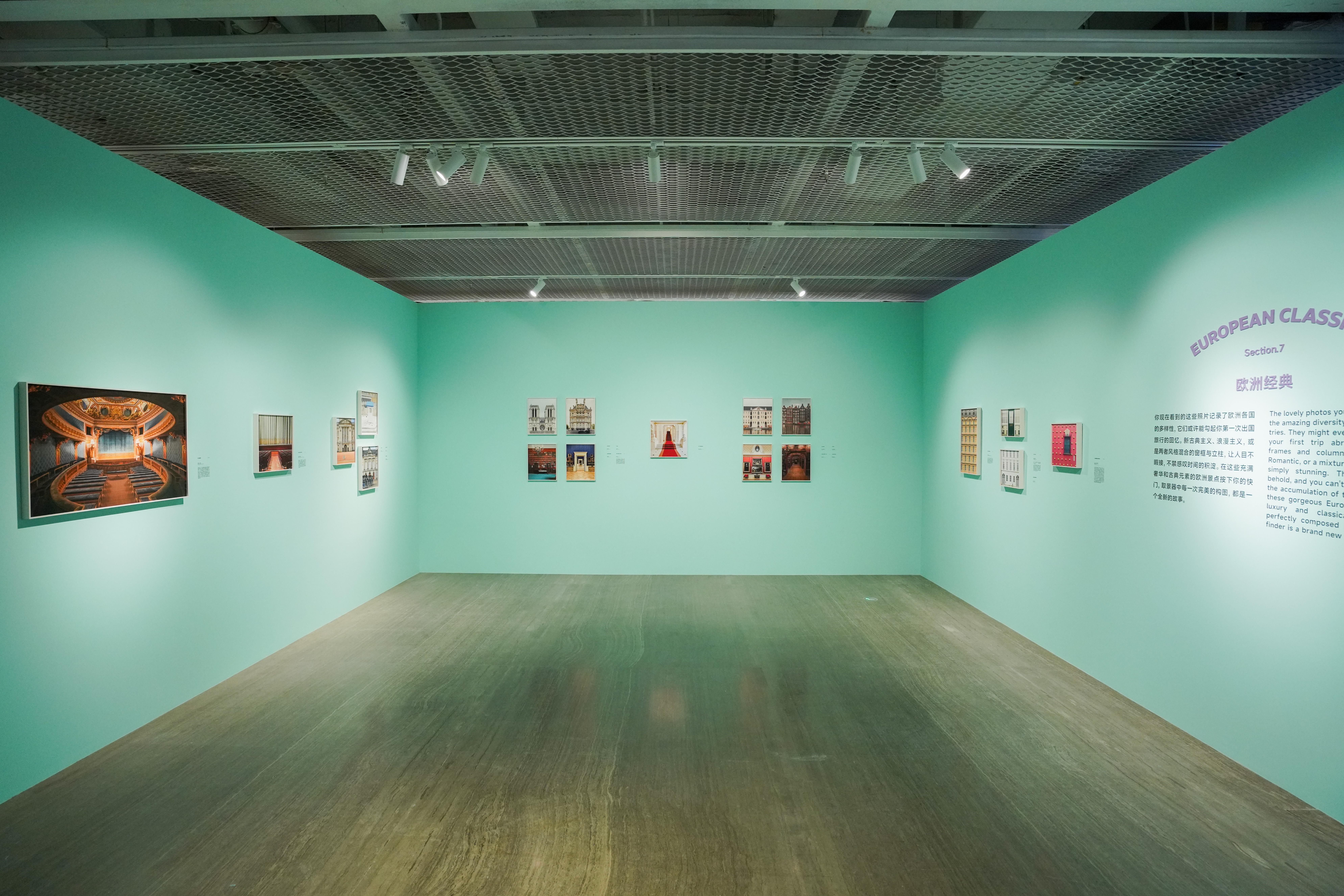 首个展区“打开相册”以日常生活场景为切入点,捕捉那些镜头定格的平凡瞬间,通过构图美学展现如何“在平凡中发现不凡”。 “终点站”则以韦式风格的长廊形式,呈现世界各地的标志性建筑,强调对称构图与透视关系。而“欧洲经典”与“星条旗”两个展区则分别聚焦欧美建筑艺术,从文艺复兴到工业革命时期的经典建筑,以及以克利夫兰Severance音乐厅为代表的美国建筑。