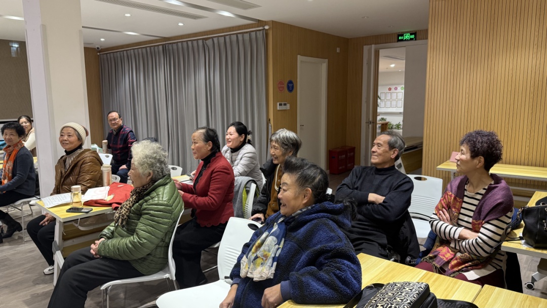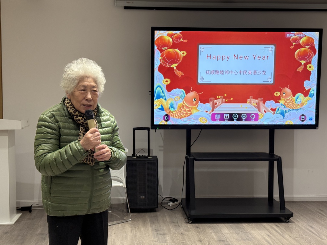 此次活动的主角是睦邻中心英语班的11位学员们,他们大多是银龄老人,每周一晚上,睦邻中心的教室里都回响着他们练习英语的声音。老年英语班的老师回顾了学员们学习过程中的点点滴滴,称赞了他们的努力和毅力。尽管学员们的记忆力不如年轻人,发音也不够标准,但他们凭借顽强的毅力持续学习、不断进步。