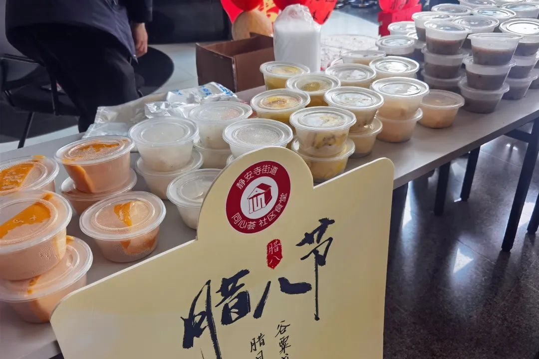 今天恰逢腊八节。静安寺街道“同心荟”社区食堂精选红豆、莲子、薏米等食材熬制香甜腊八粥,邀请白领们品尝。温热香甜的腊八粥和手工糕点,让幸福和快乐的笑容洋溢在每一个人的脸上。