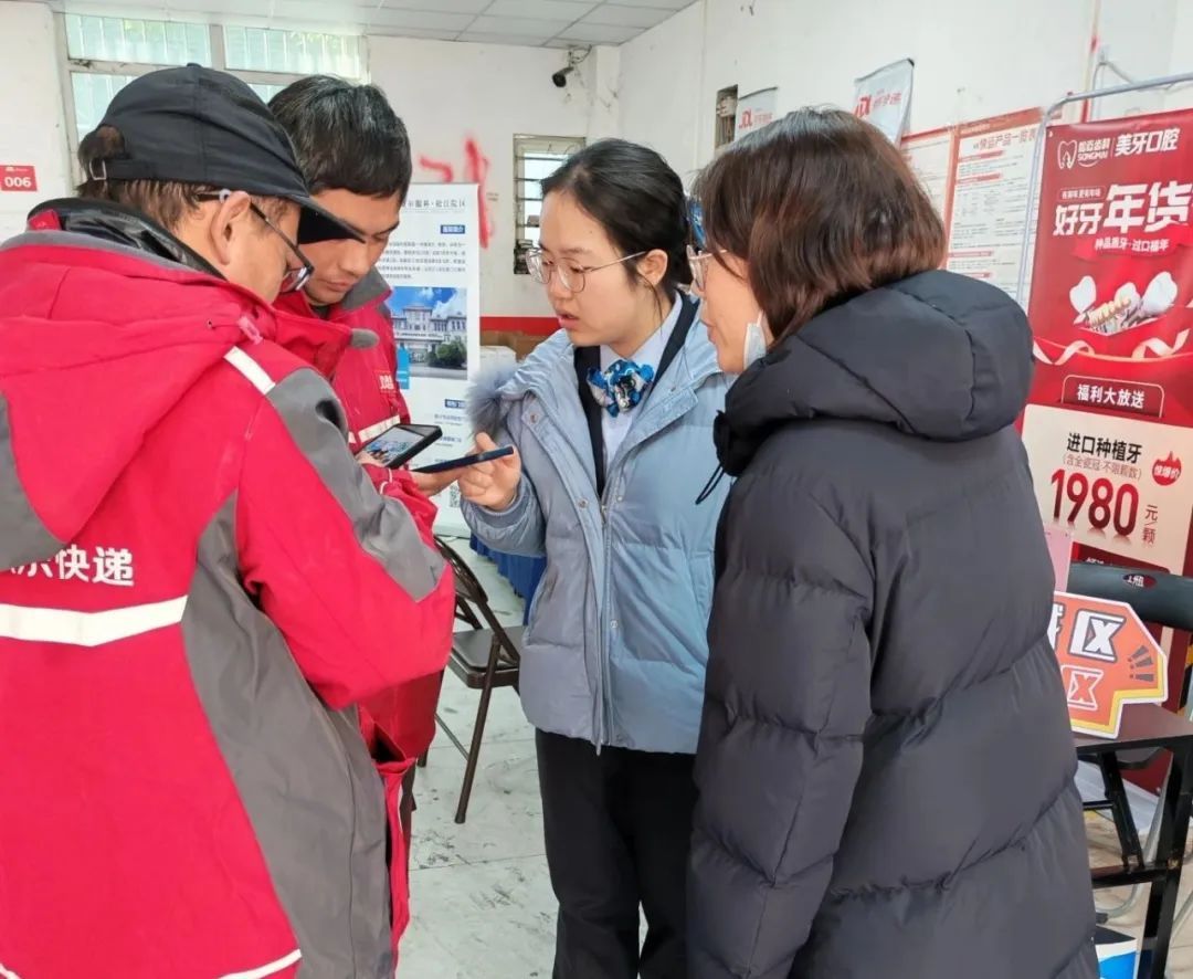 生活商户们来到京东快递驿站,实地开展“‘驿’生活服务圈”的暖“新”行动。5家爱心商户以设摊形式,为骑手们提供了暖心服务。爱尔眼科提供现场验光和检查视力服务,并科普眼科知识;松迈齿科为骑手们检查牙齿情况;新锐造型的理发师提供免费理发服务。共建单位农业银行也来到现场开展金融知识宣传,并送上日常生活用品。
