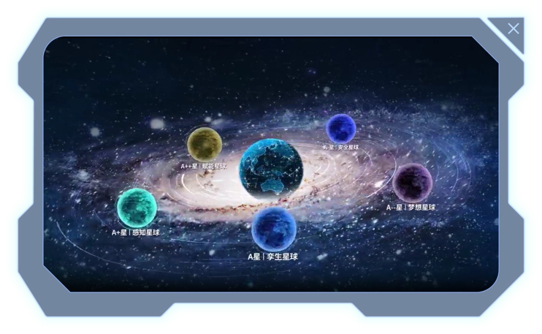 自然界有自然生态系统,量子城市自然也有独特的星球生态体系。在上海量子城市的构想中,将形成不同时态和开放体系的数字星球,包括A星孪生星球、A+星感知星球、A++星赋能星球、A-星安全星球、A—星梦想星球。每个星球自我循环,形成逻辑完整、独立运行的闭环;而五个星球之间则互为基础、互相叠加,共同实现星球间的大循环。