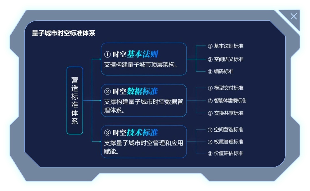 面对浩瀚的“云宇星空”,最重要的就是“统一度量衡”,制定量子城市时空标准体系,标准体系就像是大模型的统一语言,数据需要统一的格式,才能便于输入管理和实际应用。除了上文所说的基本法则,还需要制定数据标准和技术标准体系,才能构建起时空数据管理体系,实现应用赋能。