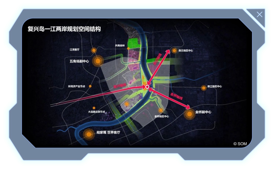 复兴岛一江两岸规划空间结构 ©上海市规资局