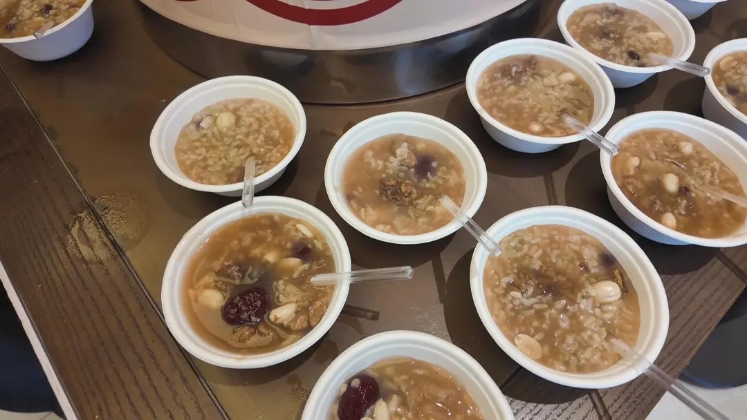 童涵春堂豫园旗舰店副店长徐文婷介绍,为了确保新鲜,童涵春堂药工会在当天凌晨三四点就开始做熬粥前的各项准备工作。在口感方面,既要保留腊八粥的香甜,同时又要充分考虑现代人对健康的关注,因此会适当减少糖分,熬出来的粥香甜软糯,好吃又健康。“今年是童涵春堂腊八施粥的第二十一年,一碗粥也是一份情,童涵春堂会继续延续施粥传统,为市民的健康保驾护航。”
