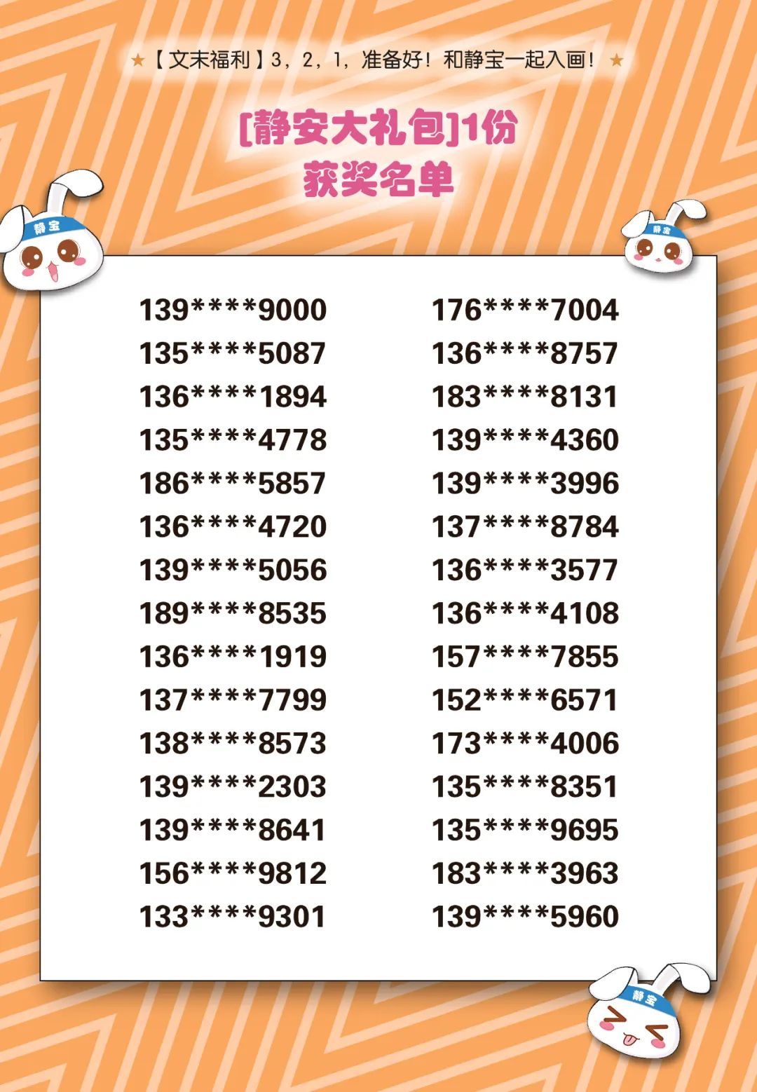 此前静宝推送的《【文末福利】3,2,1,准备好!和静宝一起入画!》中奖名单已经出炉!详见↓
