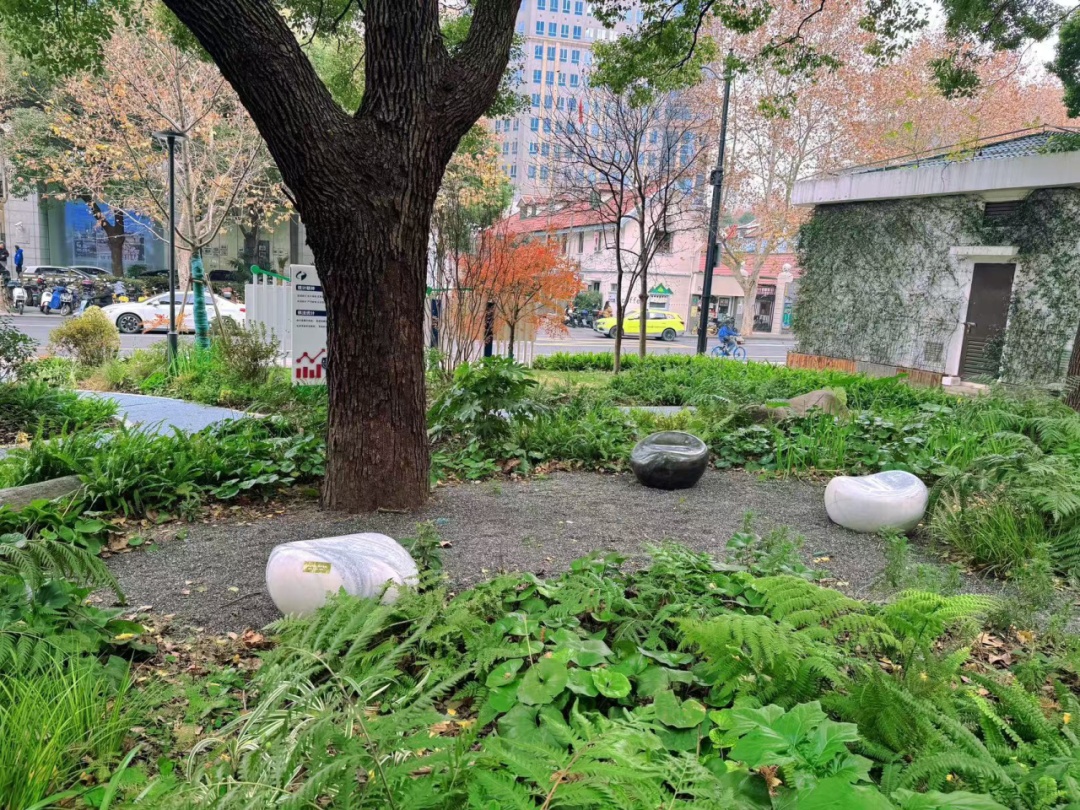 市民游客经过此处,如想歇歇脚,可以随意而坐。在静谧的城市绿洲中,呼吸着天然的氧吧,聆听着鸟鸣的婉转,感受着城市钢筋中难得的绿意,好不惬意。