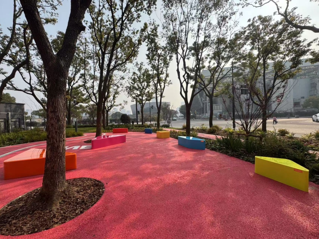 这些座椅形态各异、色彩丰富,与场地巧妙地融为一体,通过灵活的组合方式,散落在儿童活动区。据悉,这些座椅设计理念充分践行了“儿童友好”理念,材质上精心选择了不锈钢和有机玻璃,并打磨成圆弧边,为儿童提供了一个安全无毒、充满想象力和创造力的游戏空间。