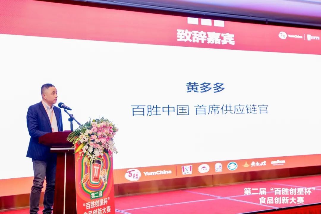 本次大赛也得到了百胜中国的大力支持。百胜中国首席供应链官黄多多在欢迎致辞中表达了企业对本次大赛的期许:希望能为食品相关专业大学生打造一个商业环境的课堂,将创新食品研发理念与商业环境的产品创新结合,为未来的择业就业打下基础;同时也借由这次大赛,为大学生传递更多营养健康的理念和知识。