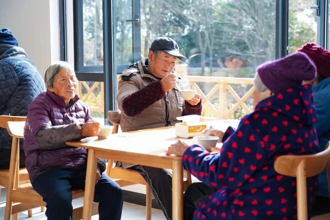 元旦过后,全新建设完成的“椿萱庭”金海村宅基养老点正式运营,迎来了第一批入住老人。至此,柘林镇“椿萱庭”宅基养老点正式启动的点位达到4个。下面就跟随小编的镜头,来一探这家最新的“椿萱庭”宅基养老点。 一早,在村委会工作人员的带领下,79岁的吴老伯走进了刚刚运营的“椿萱庭”金海村宅基养老点。养老点内整洁优美的环境、齐全的设施和布置温馨的房间,让老人和家属们赞不绝口。 “自11月份报好名以后,我就一直很期待住进来,刚参观了下,不仅我住的房间向阳敞亮,医务室、活动室和食堂等也应有尽有,适老化配备齐全,还有专人24小时服务,看完家人也放心多了。”吴老伯乐呵呵地说道。 中午时分,分散在各处的老人们也陆续来到一楼餐厅,热腾腾的饭菜已经准备好了。为欢迎首批入住的老人,除了美味丰盛的午餐,金海村还贴心准备了寓意着“圆圆满满、舒心甜蜜”的汤圆。老人们围坐在一起,边吃边唠家常,脸上洋溢着满足的笑容。 “饭菜烧得软烂,咸淡适口,油又不大,对老年人或者像我这样牙口不太好的人来说非常好。关键能和大家坐在一起吃饭、聊天,热闹又舒心,真是难得的好时光。”金海村村民李阿婆感慨地说。 “椿萱庭”金海村宅基养老点是“椿萱庭”项目的第二批建设点位,位于金海村翁家618、619号,建筑面积约为550平方米。共有10个房间,包含单人间、双人间两种房型供选择,床位18张,且所有的房间全部朝阳。 功能配套方面,“椿萱庭”金海村宅基养老点涵盖有餐厅、视听区、医务室、活动室、阅览室、休息庭院、共建菜地、观景平台等完善的设施及设备,并配备了各项无障碍设施、电梯等防护措施,能提供从为老助餐、穿衣住宿到日间照料、呼叫服务、文化娱乐、健康指导等多样化服务,满足老人日常生活的各类需求。 据金海村村干部介绍,为全方位照顾好老人在这里的生活,村里每月定期开展歌舞、书画、手工制作等各类活动,丰富老人的精神生活,提高生活质量。同时,联合镇社区卫生服务中心、村卫生室完善“宅基养老+医养”模式,开展健康监测、定期巡诊,动态掌握住养老人健康状况,让入住老人真正享受到医养结合的实惠,让“幸福养老”惠及每位老人。 “椿萱庭”宅基养老模式是柘林镇2023年开始探索实施的农村宅基嵌入式养老新路径。除了已正式运营的新寺村、迎龙村、临海村、金海村4处点位以外,目前,新寺村二期、海湾村“椿萱庭”点位也已进入验收阶段。2025年,柘林镇还计划在三桥村、南胜村、王家圩村、兴园村建设4处点位,进一步优化全镇农村养老点位布局,让更多老年人在家门口享受便利与幸福。