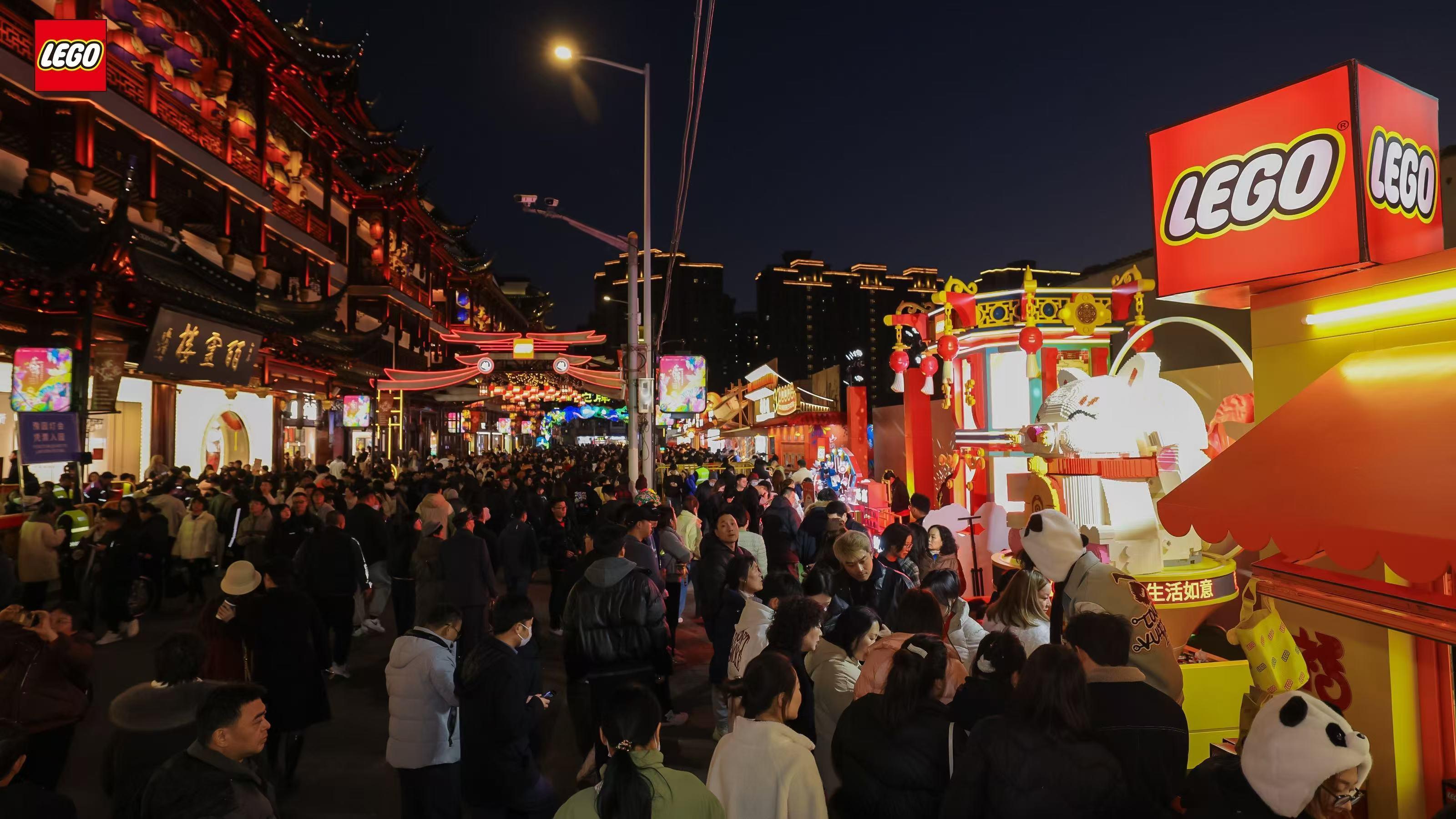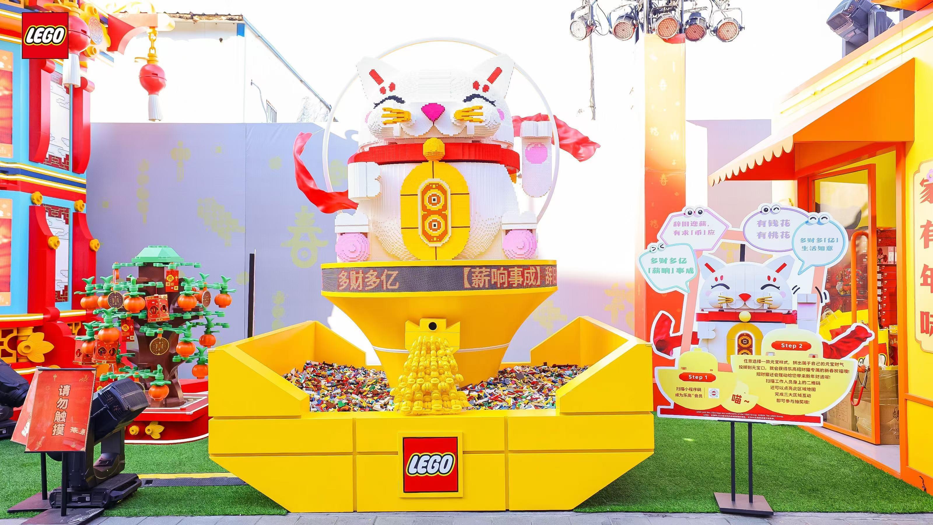活动期间,消费者可前往上海豫园旧校场街,探索三大互动区域:“五福迎春”区域打卡,品味非遗文化与乐高积木的新意结合,感受璀璨灯光里的新春年味;“福来运转”灯下许愿,将心愿“灯”上乐高大屏,见证春节新年愿望;拼搭“招财猫”创意元宝,新年招财运,迎接滚滚好运。