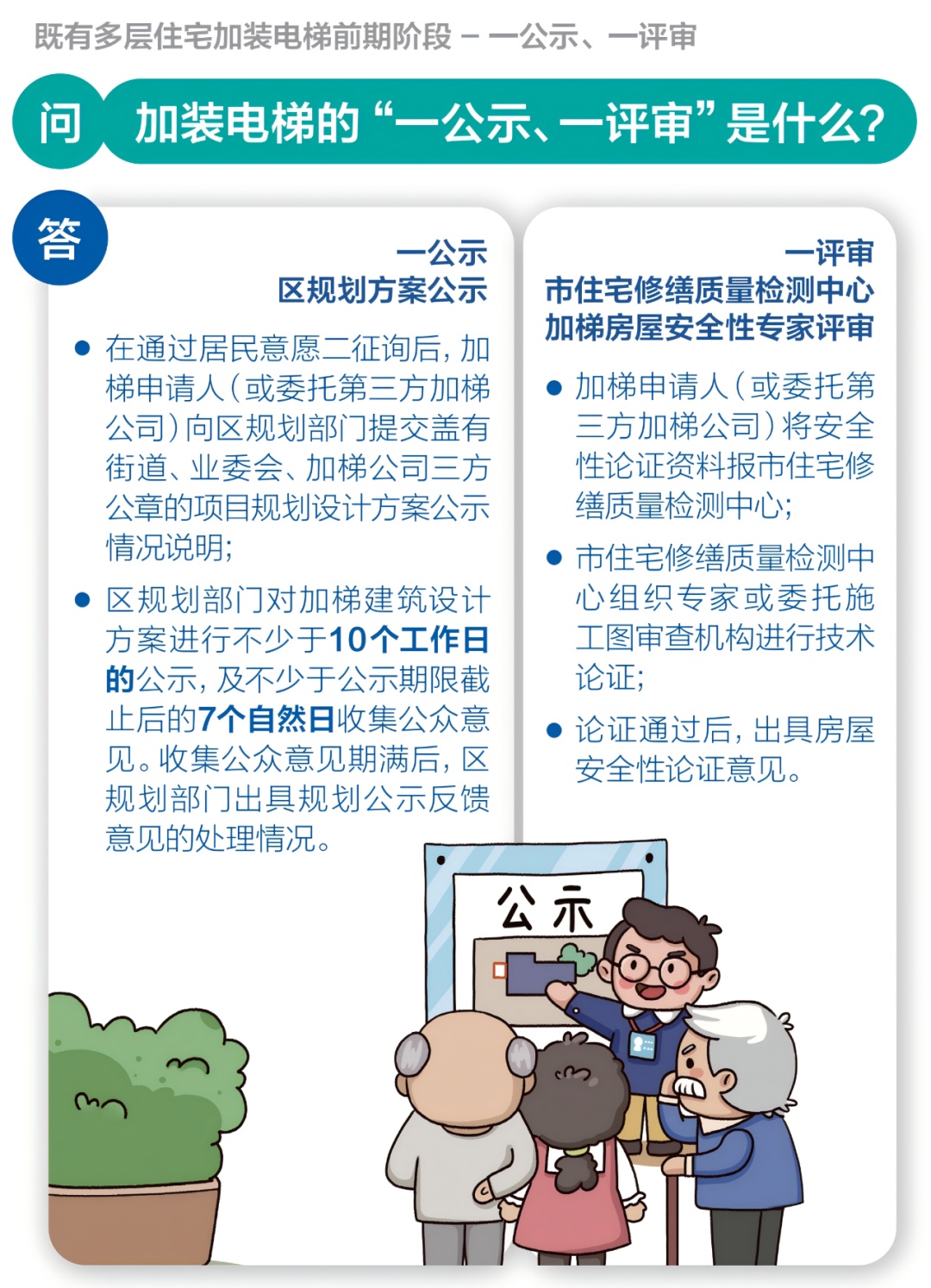 为了进一步方便群众办事,帮助居民厘清加装电梯各环节的重点和可能会产生的问题,早一步圆“悬空老人”的加梯梦,徐汇区房管局出台《既有多层住宅加装电梯一本通》(3.0版),通过“一问一答”的形式,分五个章节,针对加梯工作中的重点环节,对加装电梯涉及的流程、规定、政策、管理等问题进行通俗易懂地解答,让居民群众们能够“一册读懂加梯全流程”。