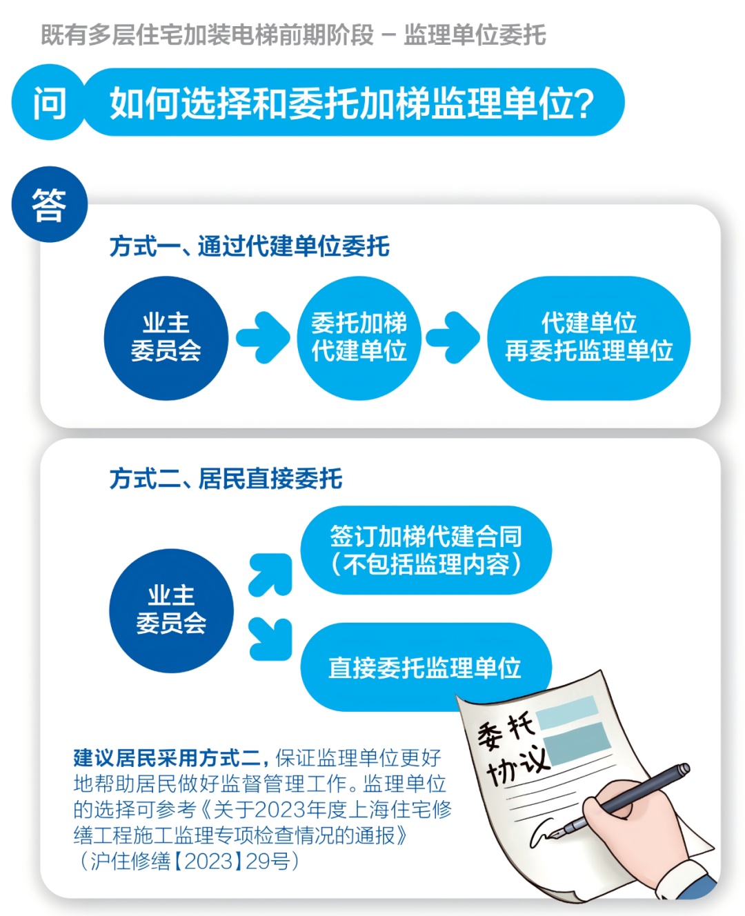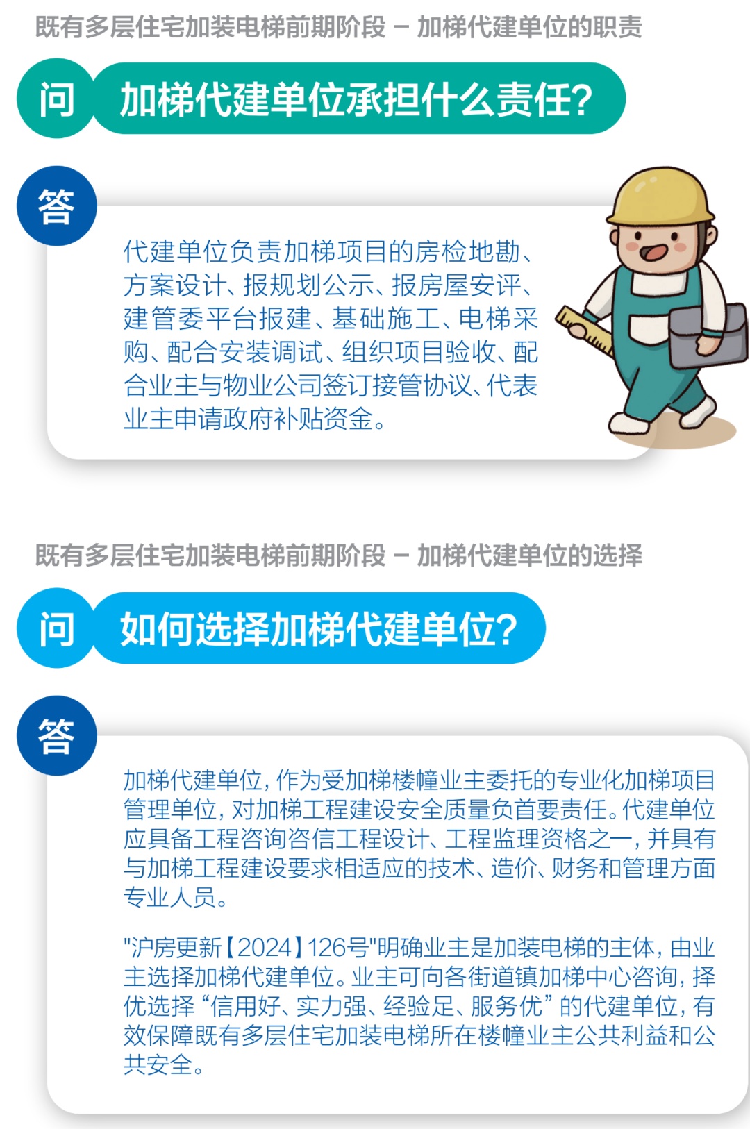 加梯业主是加装电梯的主体。本篇章针对加装电梯前期的主要事项:如何申请加梯、如何选择代建和监理单位、如何开展“二征询”、“二方案”、“二资金”、“一公示”、“一评审”、加梯费用分摊等问题详细进行解释说明。