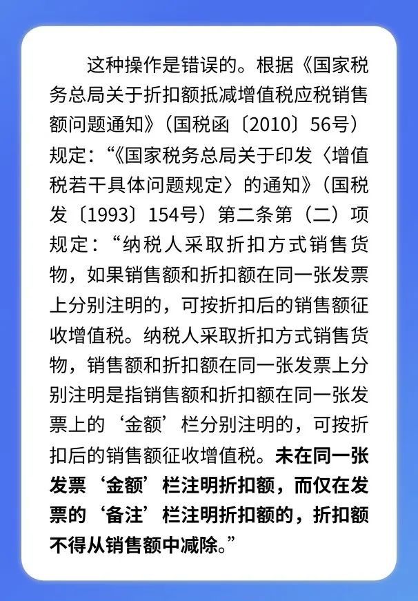在日常生产经营过程中,企业经常采取折扣方式销售货物。今天,申税小微用问答方式梳理了该种方式销售货物时,开具发票过程中的三个注意点,快来了解一下吧。