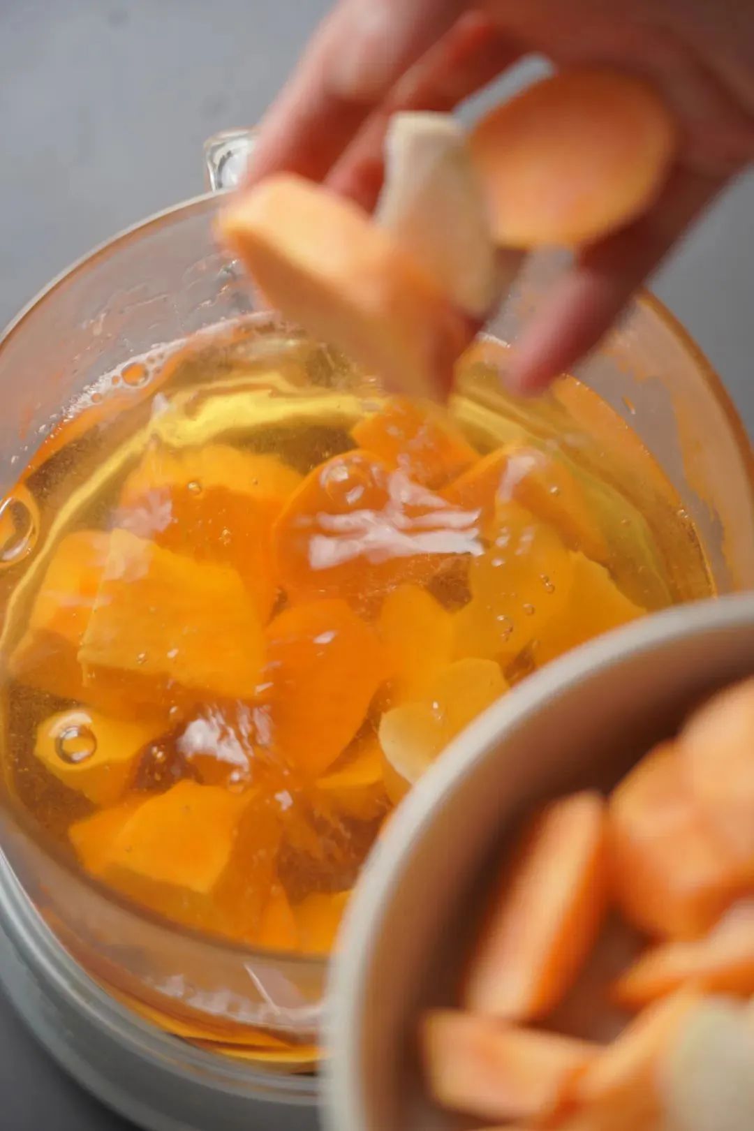 除了蒸烤,今天教大家来制作一份番薯糖水,一口甜滋滋的汤水,一口软烂的番薯,吃得人心里那叫暖烘烘!