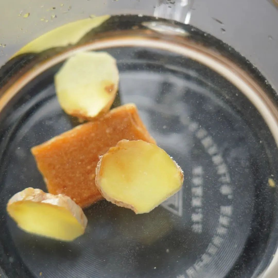 第四步:另起锅,锅中倒入适量清水,加入片糖和姜片,待水沸腾后放入红薯块、白薯块和板栗仁,煮25分钟左右即可出锅。出锅前加入煮好的芋圆,还可依据个人口味放入少许红枣点缀。