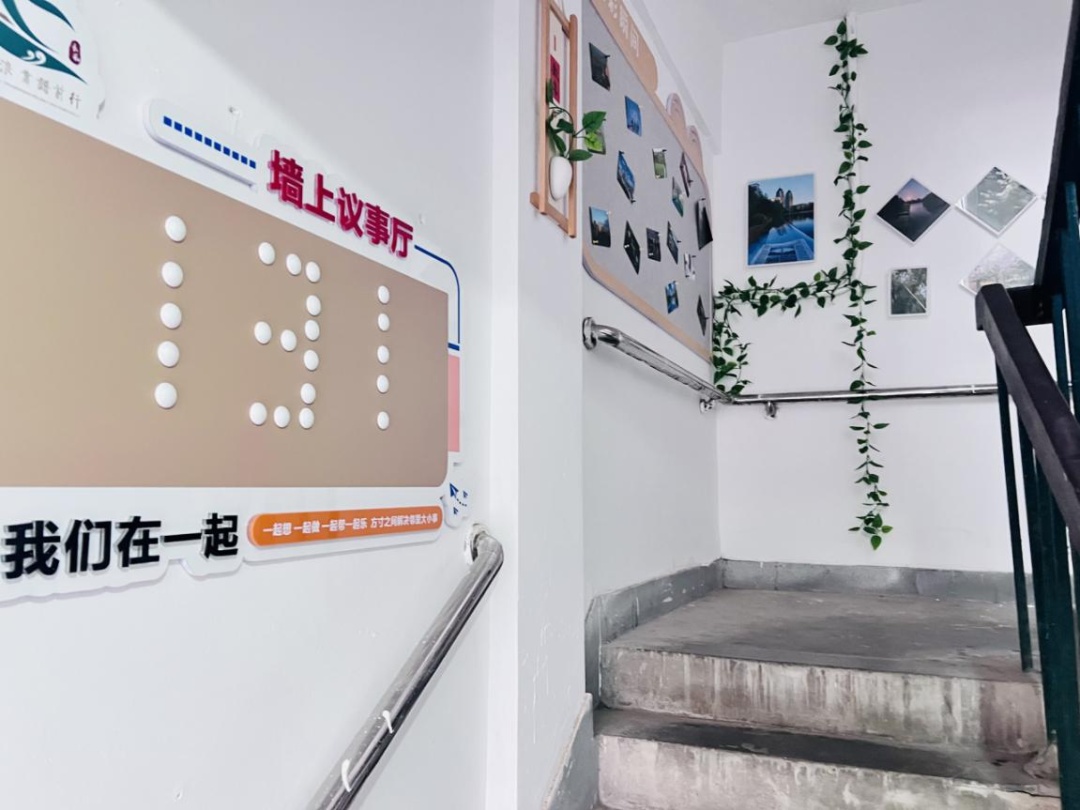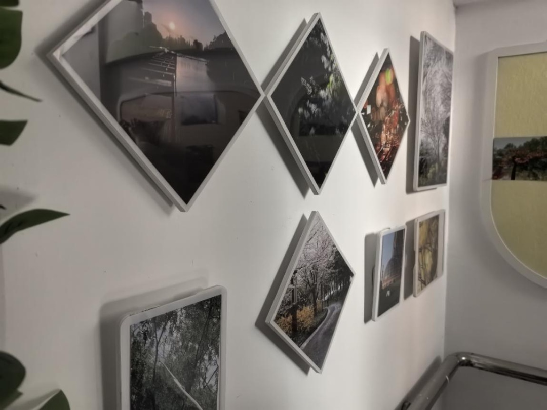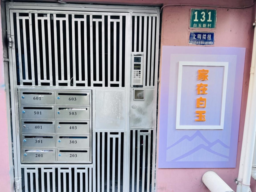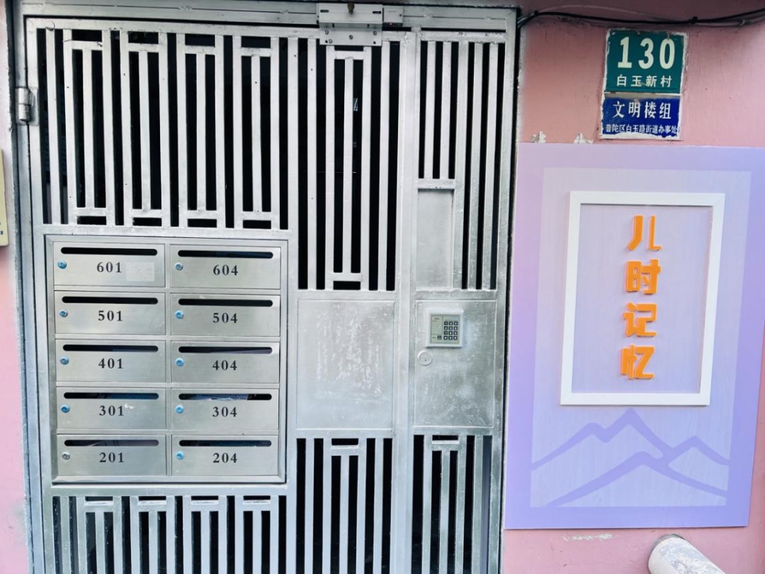 我是“人人屋”第二梯队采编社的队员,只要我有时间,我都会用镜头来记录社区里发生的大小事情。 楼组的居民们也纷纷拿出自己的摄影作品,迫不及待地与大家分享自己记录下的白玉公寓日新月异的变化。这些精彩的摄影作品汇聚成小区楼道的“‘家在白玉’摄影角”。 小区里的个人摄影展 “家在白玉”里的摄影空间 如今走进白玉公寓,映入眼帘的已不再是凌乱的电线、昏暗的灯光和斑驳的墙壁,而是干净的墙面、多彩的照片、个性化作品的展示空间以及整齐排列的快递架,楼道焕发出前所未有的生机与活力。居民们亲自参与设计的小角落不仅美化了居住环境,更拉近了邻里间的距离。 左右滑动查看图片 改造前 左右滑动查看图片 改造中 左右滑动查看图片 改造后