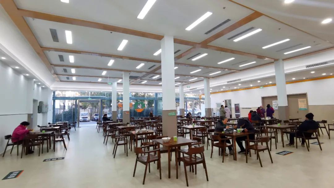 对于该社区食堂的选址和设点,方松街道经过多角度的综合考虑。在此之前,方松餐饮在方松街道布局了中部和西部两个食堂,分别为兰桥食堂和西部食堂。然而,位于街道东部的建设花园、水岸华庭、祥和花苑等小区距这些食堂较远,居民们对“家门口”开设社区食堂非常期待。为此,方松街道在通波路思贤路口东侧的通波菜场内,划出部分区域设立了东部食堂——通波食堂。至此,方松街道居民社区食堂就餐基本实现了“15分钟便民服务圈”。