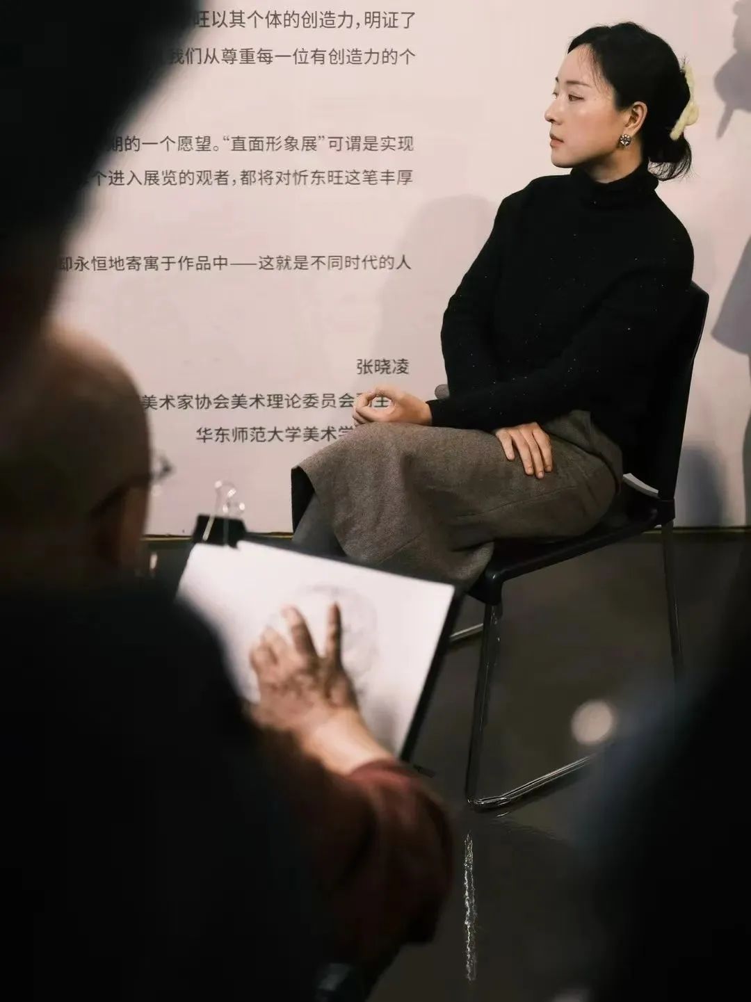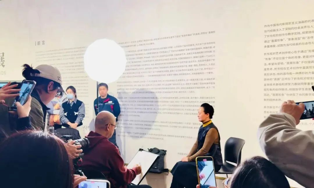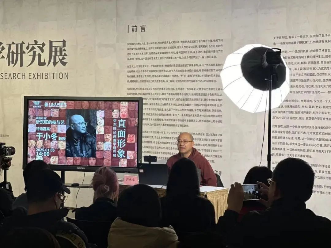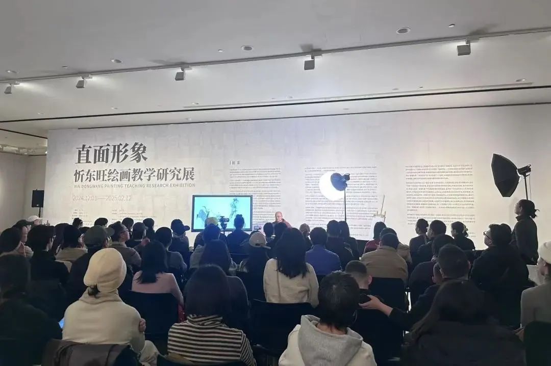 1月5日下午,天津美术学院教授于小冬老师以“东旺的技与艺”为主题,在“直面形象——忻东旺绘画教学研究展”的展厅中,带领听众们深入领略了忻东旺这位杰出艺术家的绘画世界,展开了一场关于艺术、人生与审美的深度对话。