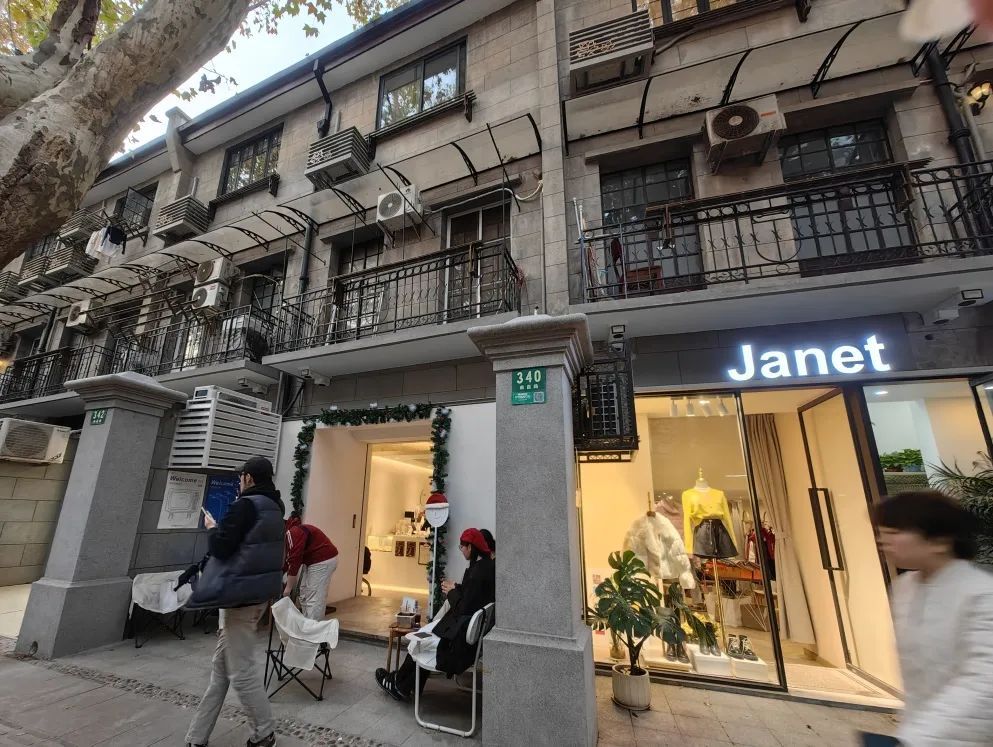 而在一街之隔的淮海坊,在拆除违章搭建后,恢复并统一底层沿街的建筑与庭院风貌,风格各异的小商铺也吸引着来往的游客。