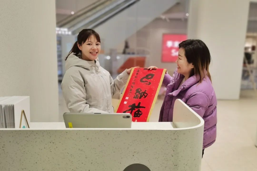 在送春联和“福”字活动进行的同时,虹桥南丰城会员空间的新春市集活动也吸引了大批商户和白领参与。