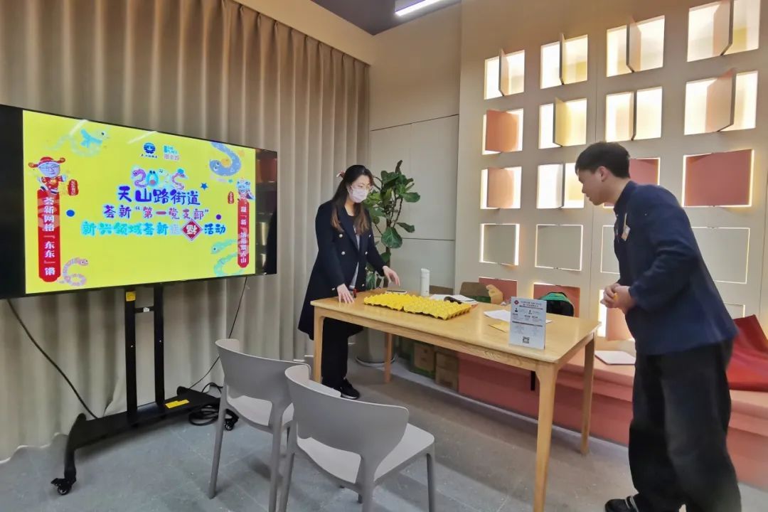 1月9日,天山路街道“荟新”第一党支部举办新兴领域荟新送福活动,为小个专商户、新就业群体、楼宇支部党员和白领送去暖心的新春问候和有趣的市集活动,进一步增强支部凝聚力。